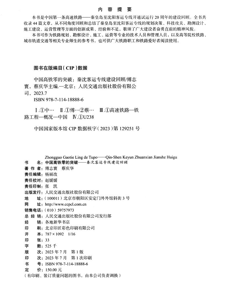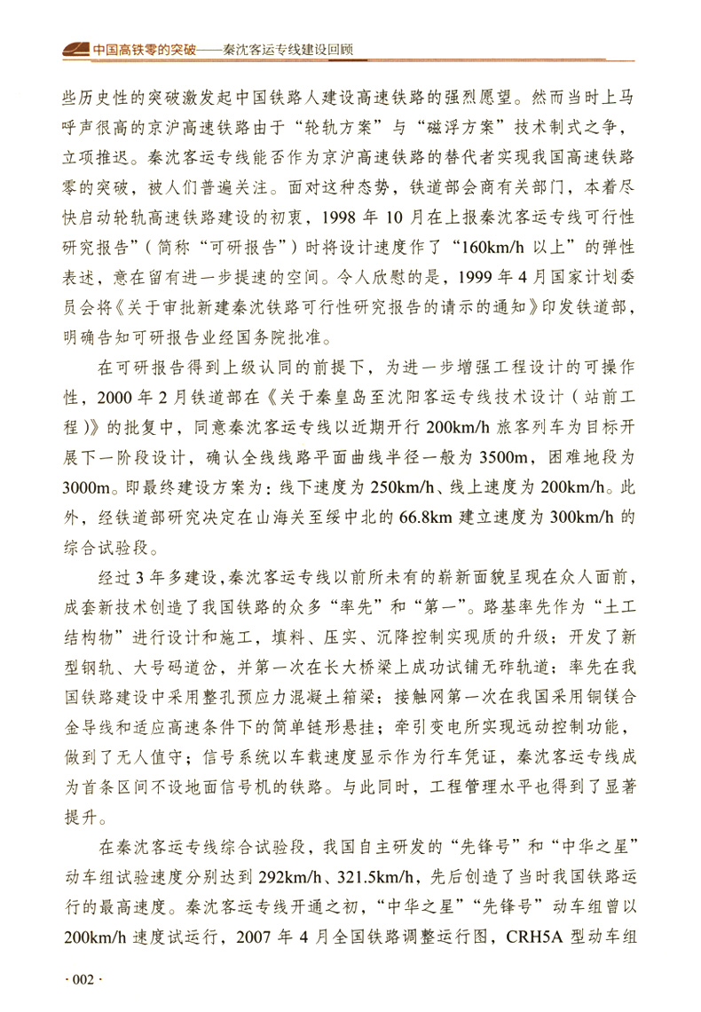 书名:中国高铁零的突破——秦沈客运专线建设回顾