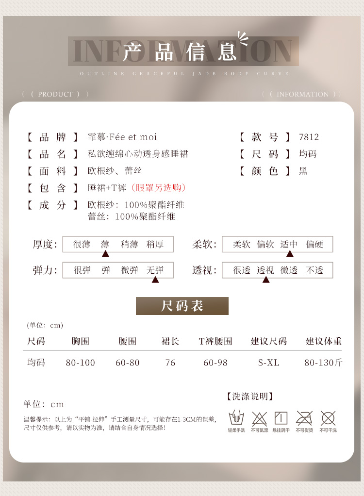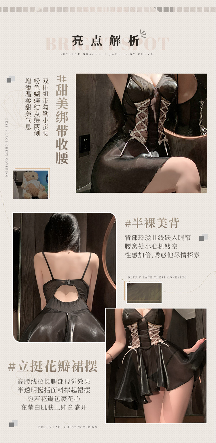 霏慕 私欲缠绵心动透身感睡裙7812 情趣内衣吊带连体黑丝袜性感诱惑睡衣短裙