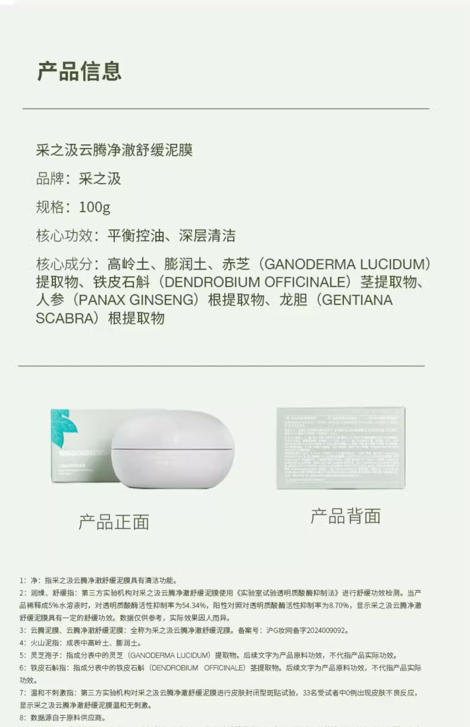 【官方正品】云南白药采之汲云腾净澈舒缓清洁泥膜控油去角质涂抹面膜100g