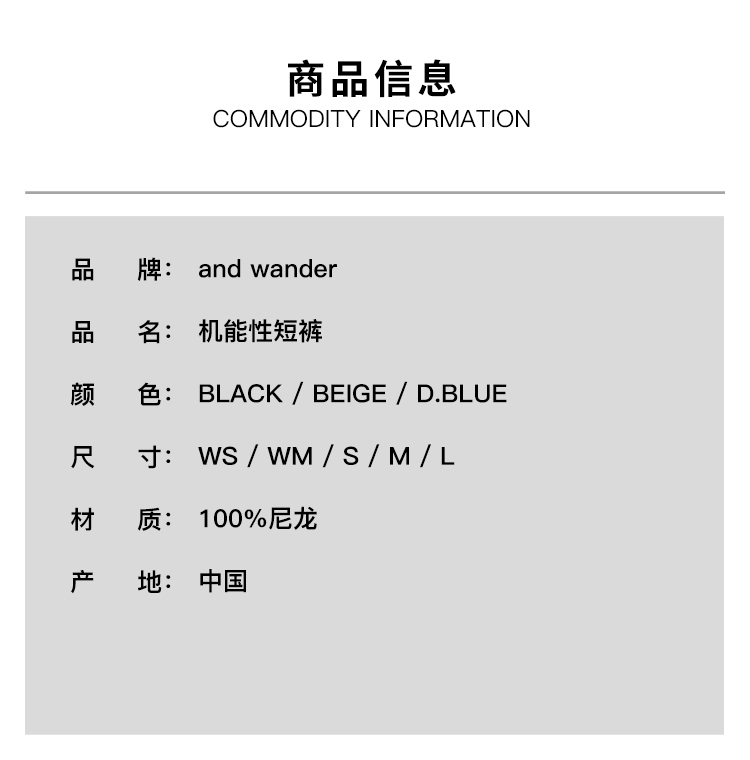 and wander Ny taffeta hiker 男女塔夫绸尼龙宽松户外机能性短裤