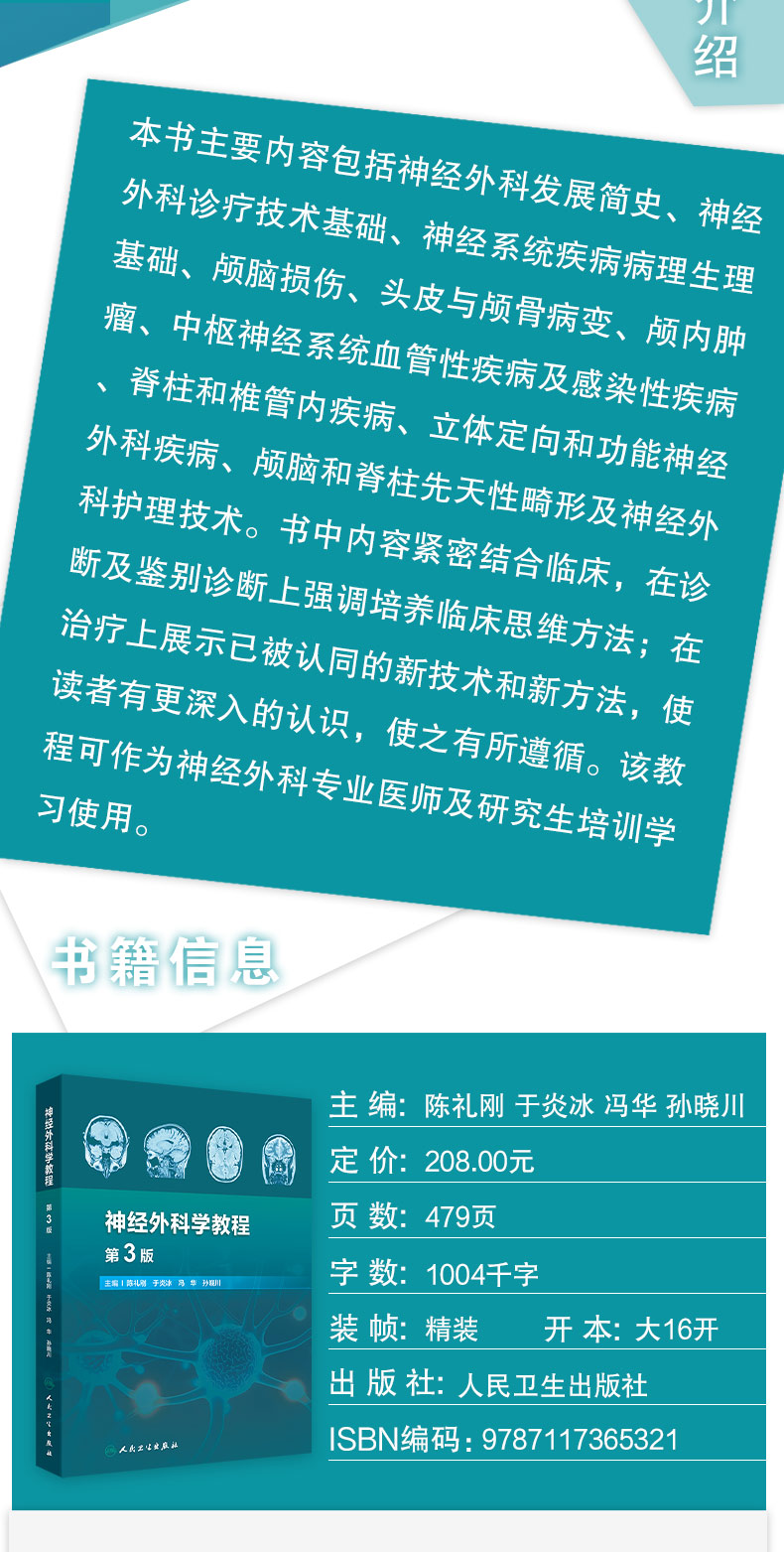 神经外科学教程第3版 神经外科诊疗技术基础 神经系统疾病病理生理基础 颅脑损伤 主编 陈礼刚等人民卫生出版社9787117365321