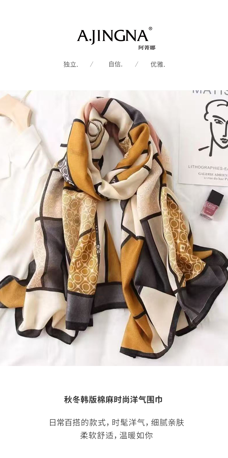 【周年福袋】阿菁娜秋冬韩版棉麻时髦洋气围巾A29Q729001