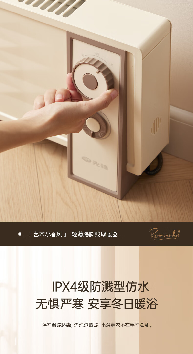 先锋(SINGFUN)踢脚线取暖器家用电暖器石墨烯电暖气片大面积电暖风办公室浴室防水恒温加热器室内移 【石墨烯速热+居浴两用】DTJ-T17