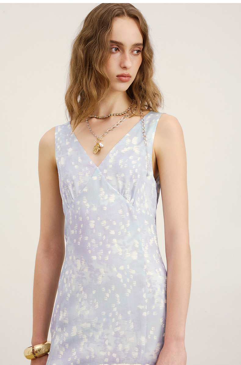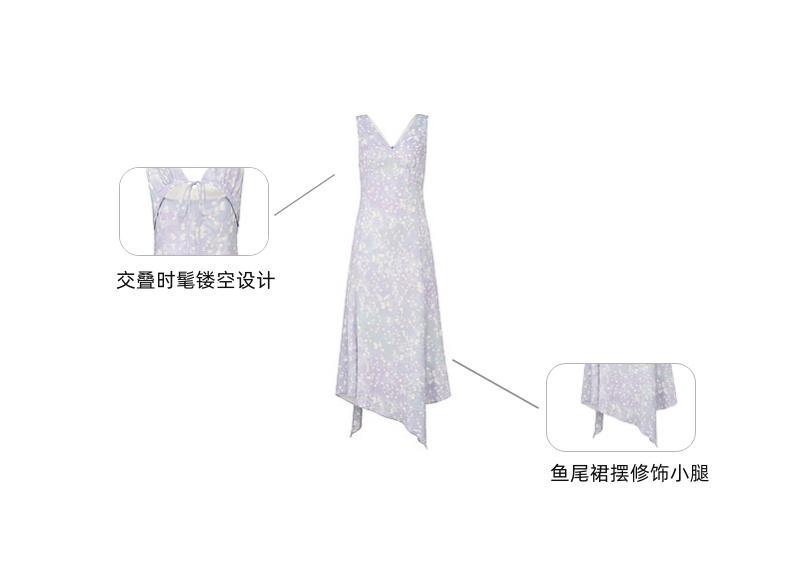 lost in echo2026年春夏新款时尚V领收腰显瘦不规则鱼尾连衣裙