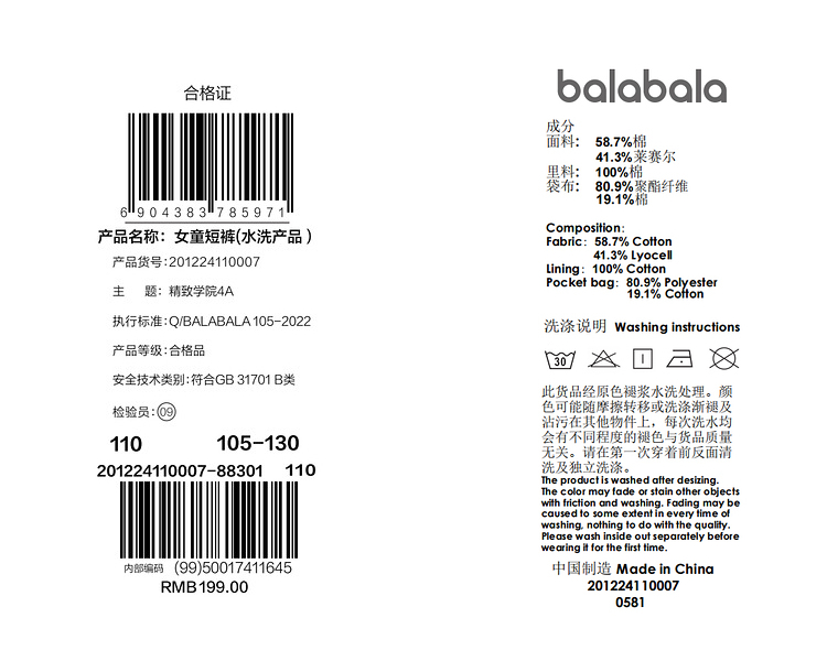【商场同款】巴拉巴拉女童牛仔短裤儿童裤子夏2024新款甜美花苞裤