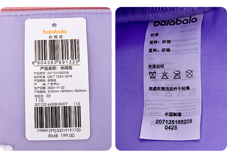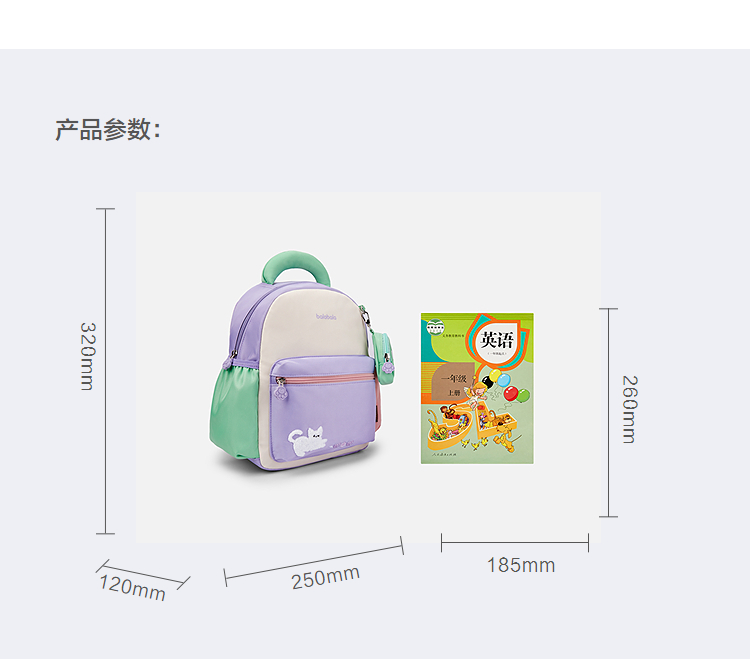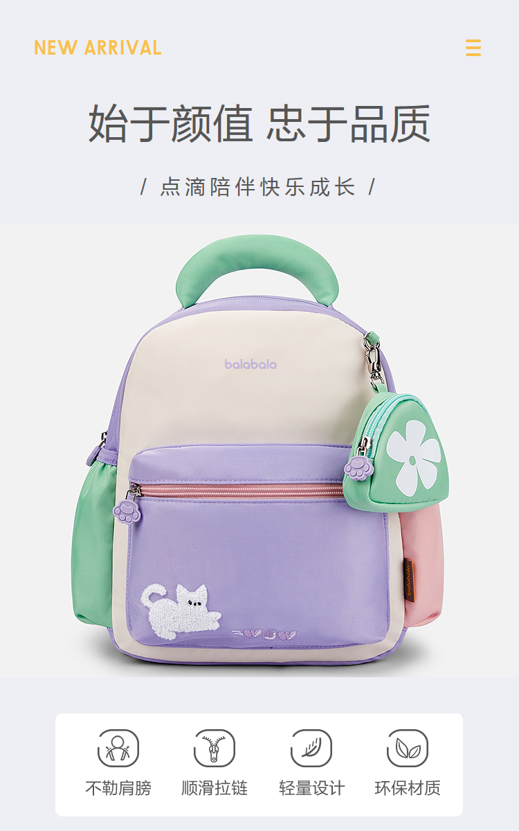 巴拉巴拉儿童休闲包男女童小童双肩包舒适多巴胺配色时尚可爱户外
