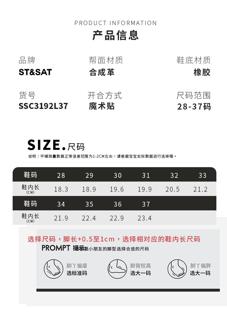 【童鞋】星期六休闲百搭魔术贴绒里可选德训鞋SSC3192L37/SSC419DLAE