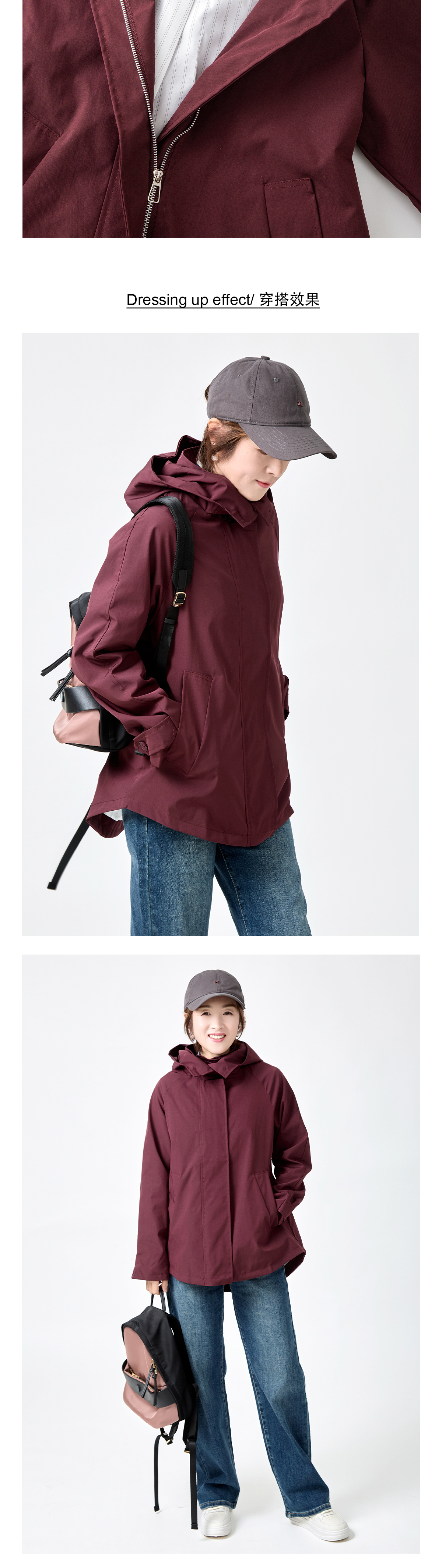 气质连帽风衣外套