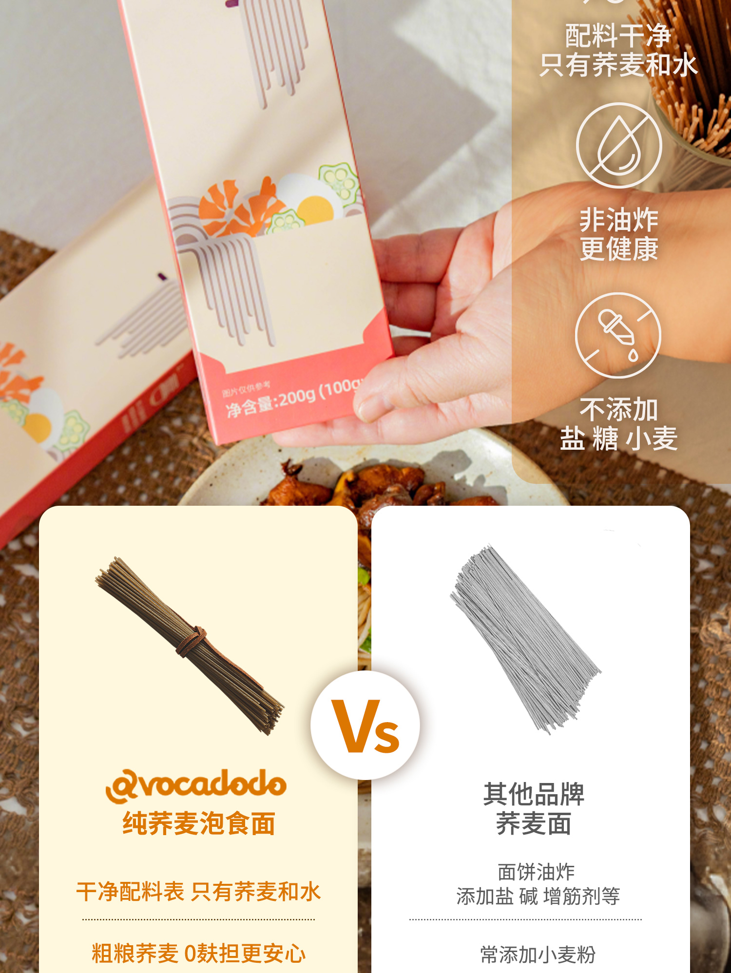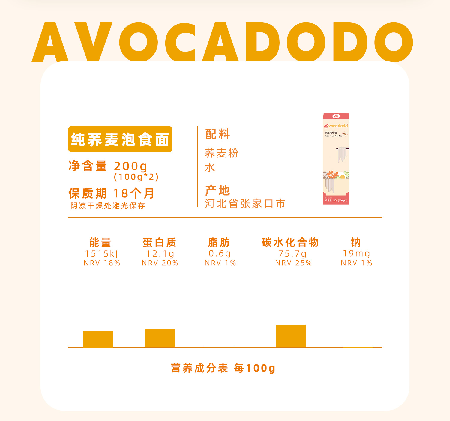 Avocadodo纯荞麦面条盒装无小麦麸质泡面免煮非油炸粗粮牛油果果桥本