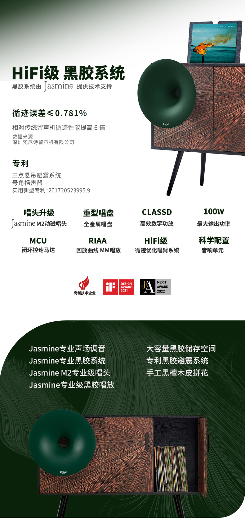 Fennessy/梵尼诗 Kresling i7留声机柜式一体黑胶唱片机 蓝牙音响箱