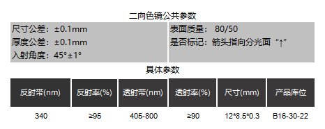 二色镜 ≥95%@340 Tavg≥90%@405-800 12*8.5*0.3 6002