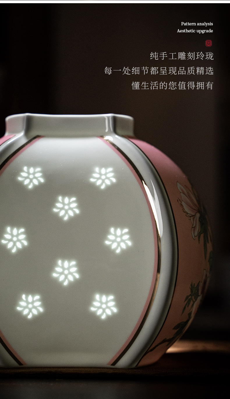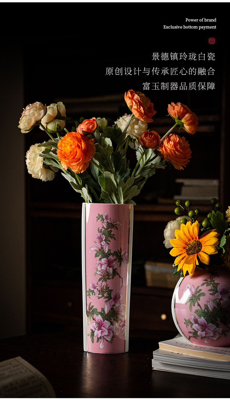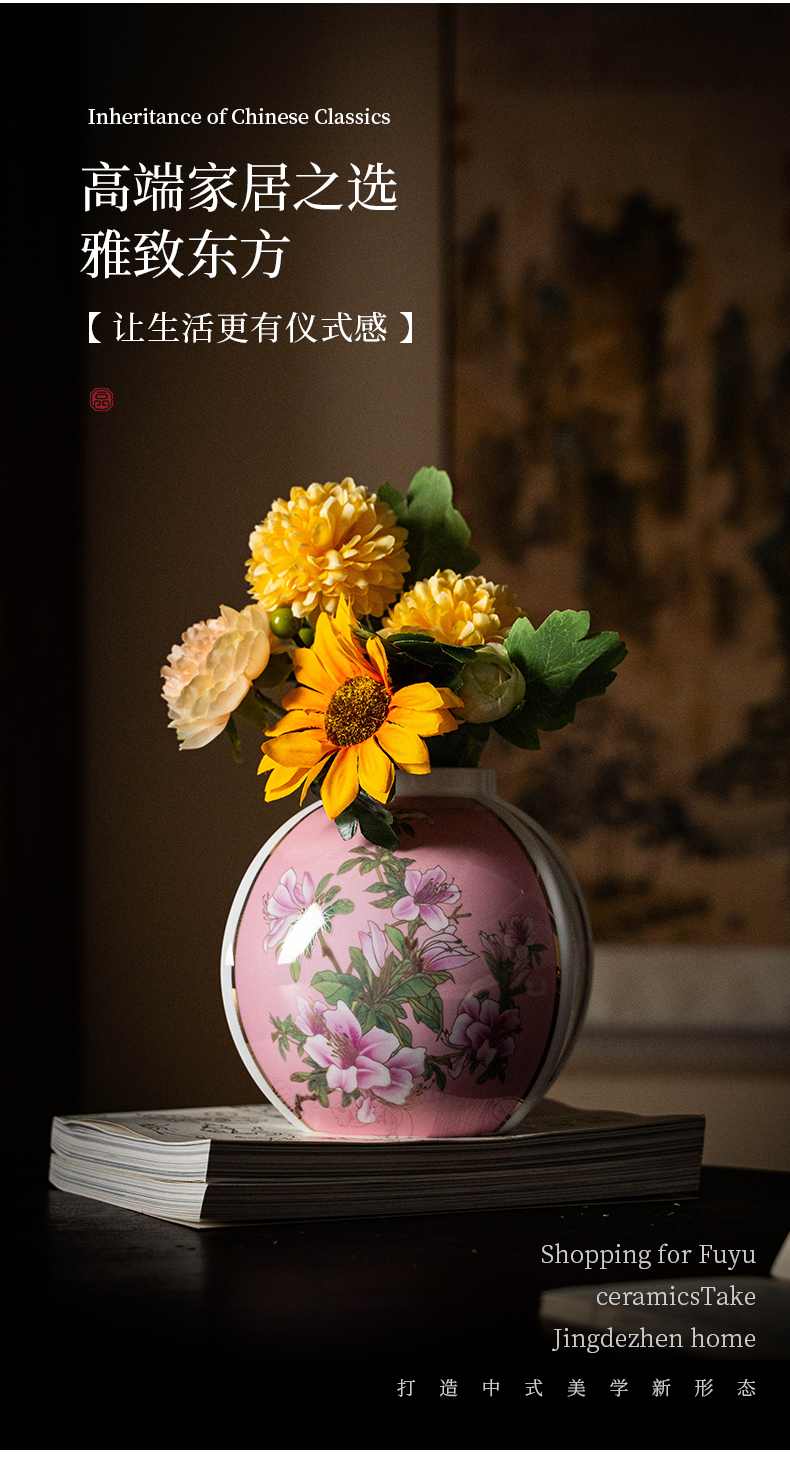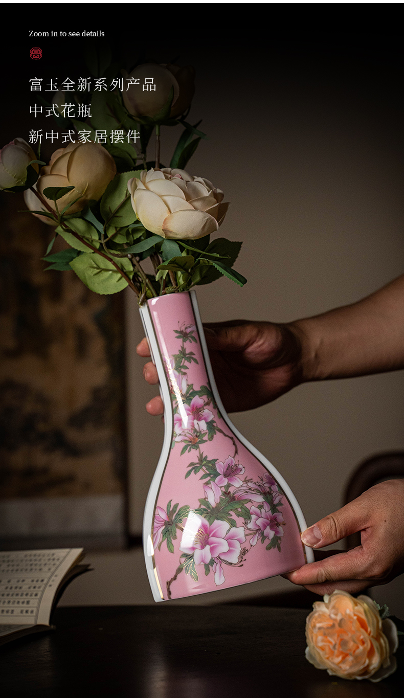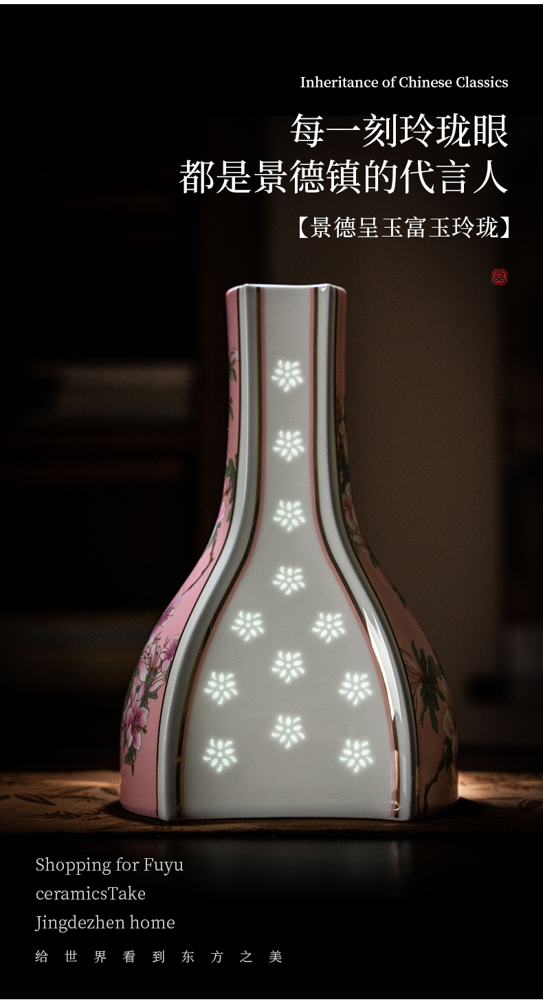 富玉 景德镇粉彩玲珑花瓶创意艺术感装饰摆件家居乔迁送礼