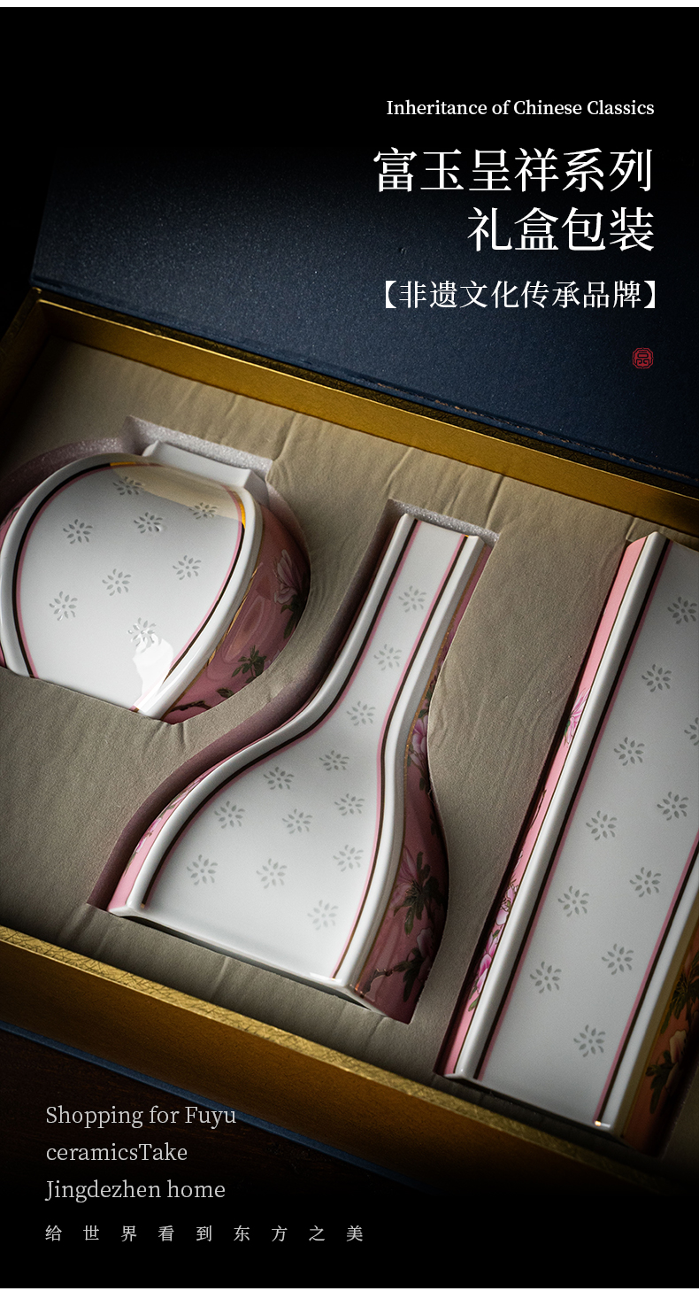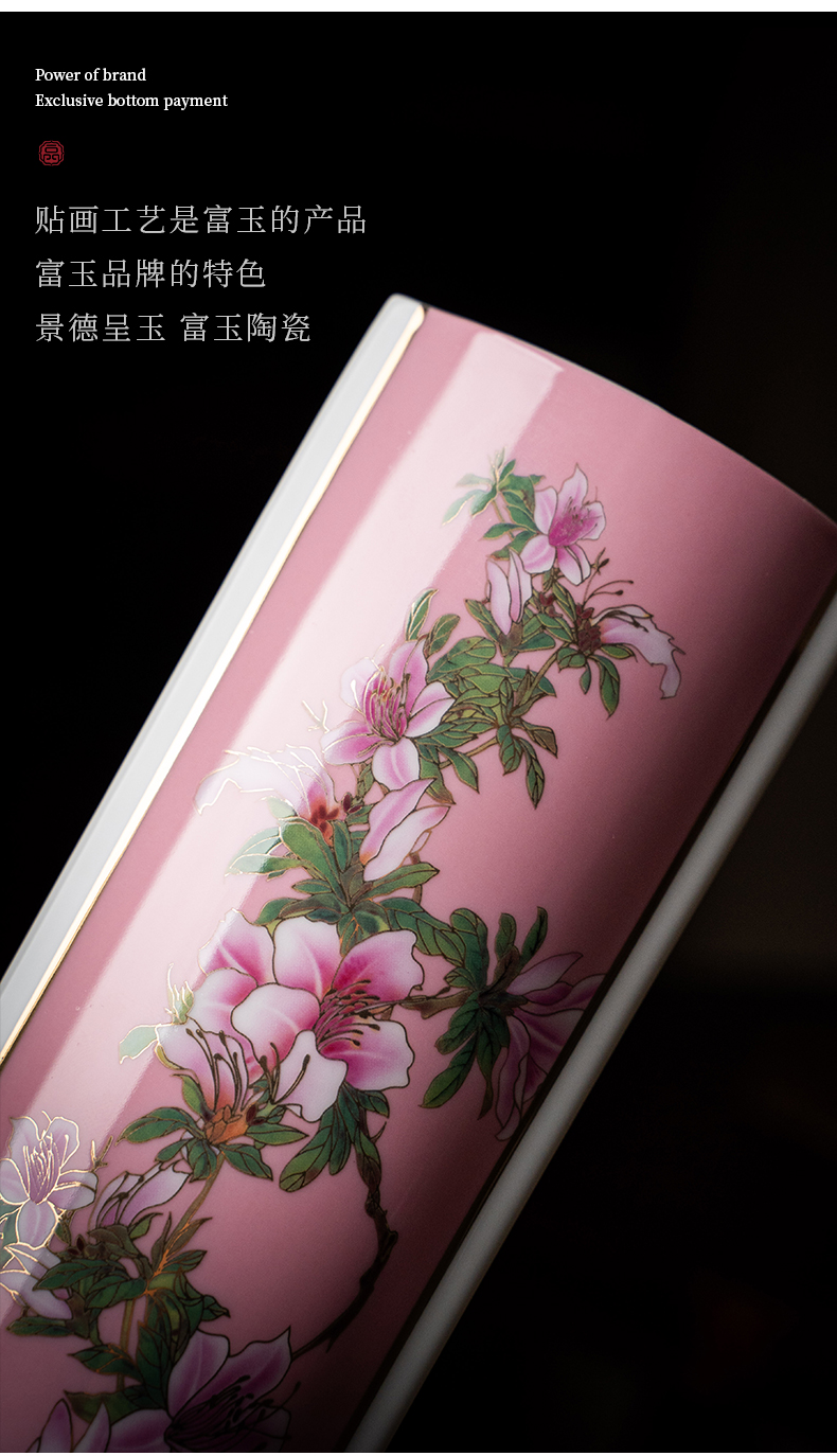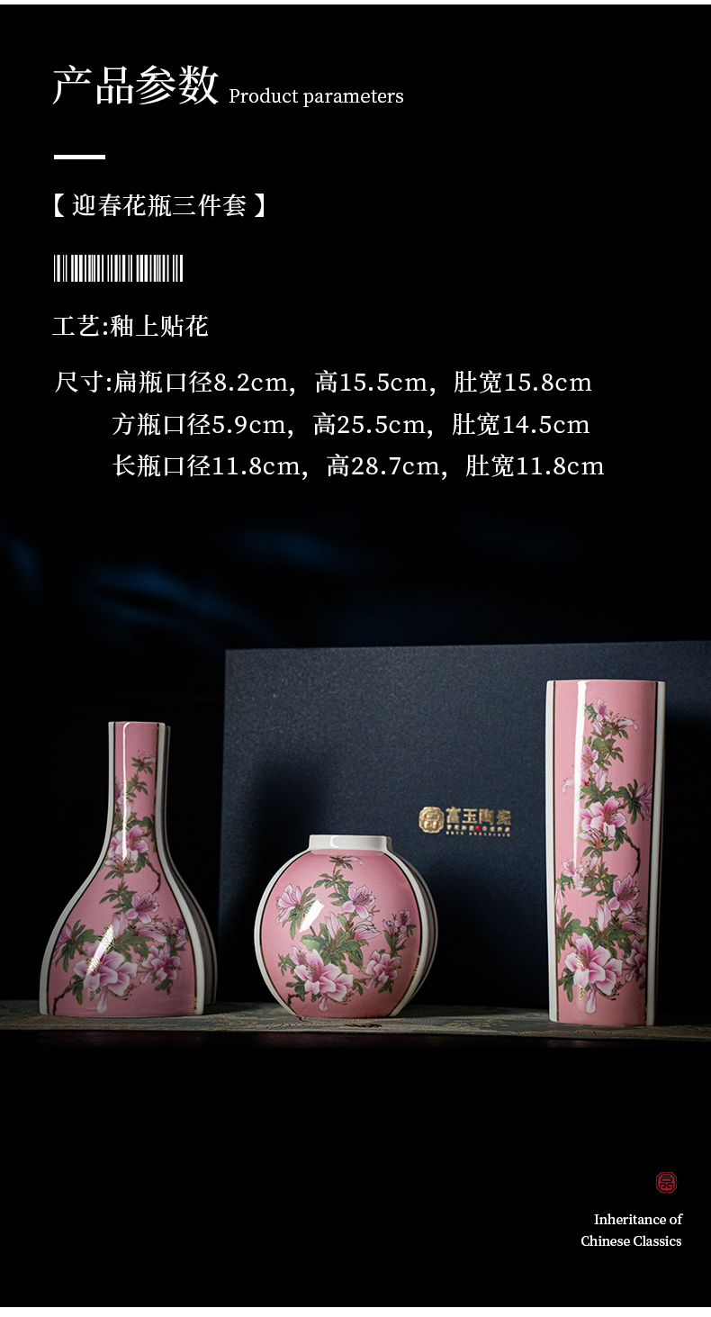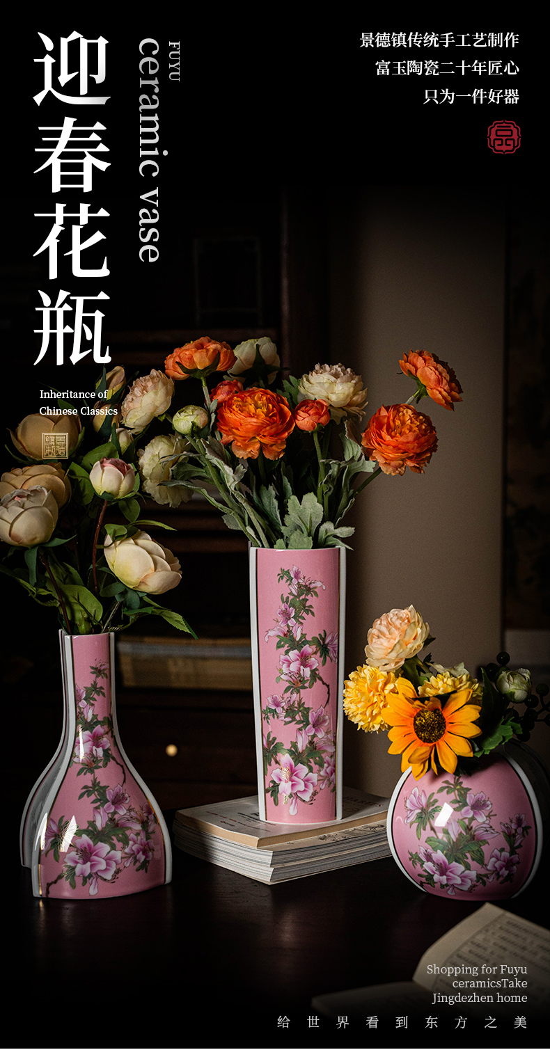 富玉 景德镇粉彩玲珑花瓶创意艺术感装饰摆件家居乔迁送礼