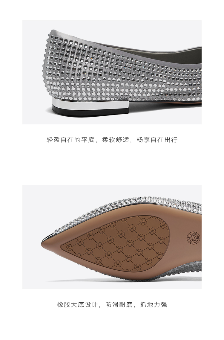 【星空系列】星期六26春新款甜美水钻方头平底单鞋SSE1111211