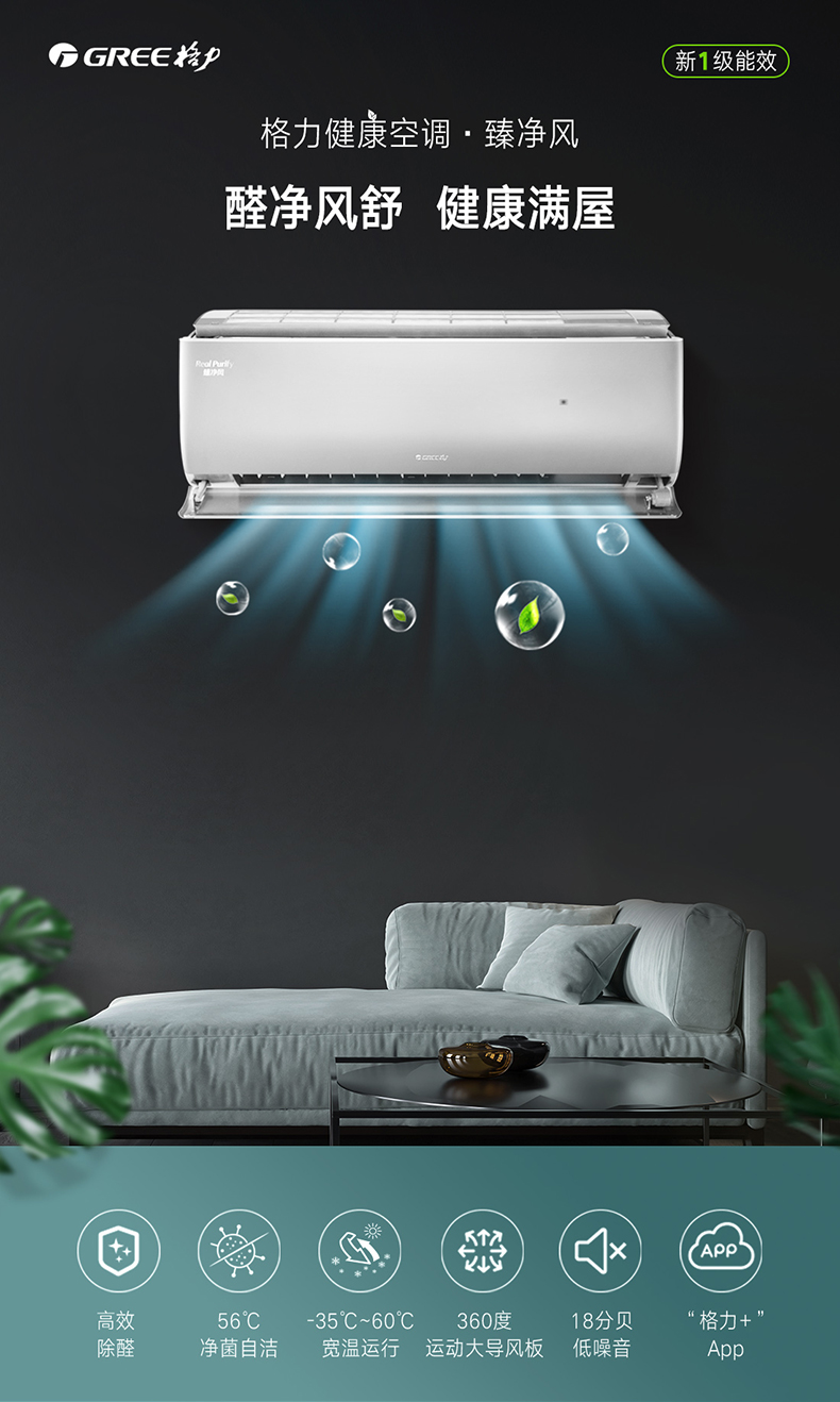 格力·臻净风变频冷暖正1.5匹1级能效挂机空调 KFR-35GW/(35543)FNhCh-B1(WIFI)(钛空银)