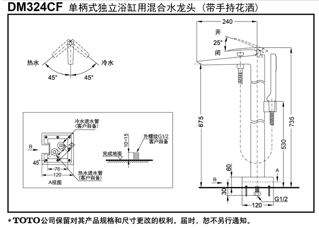- 商品名称:铜合金立式单柄双控浴缸水嘴
