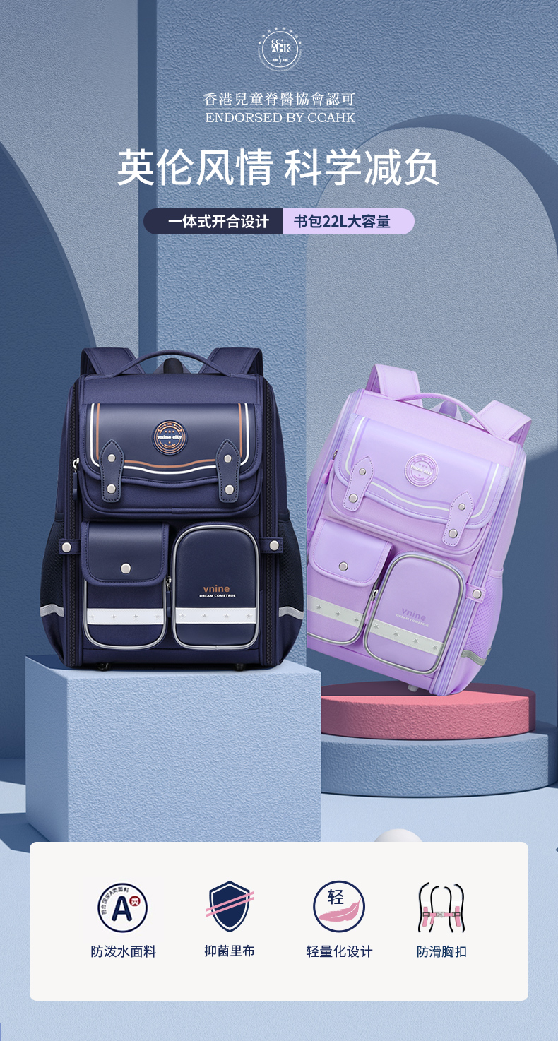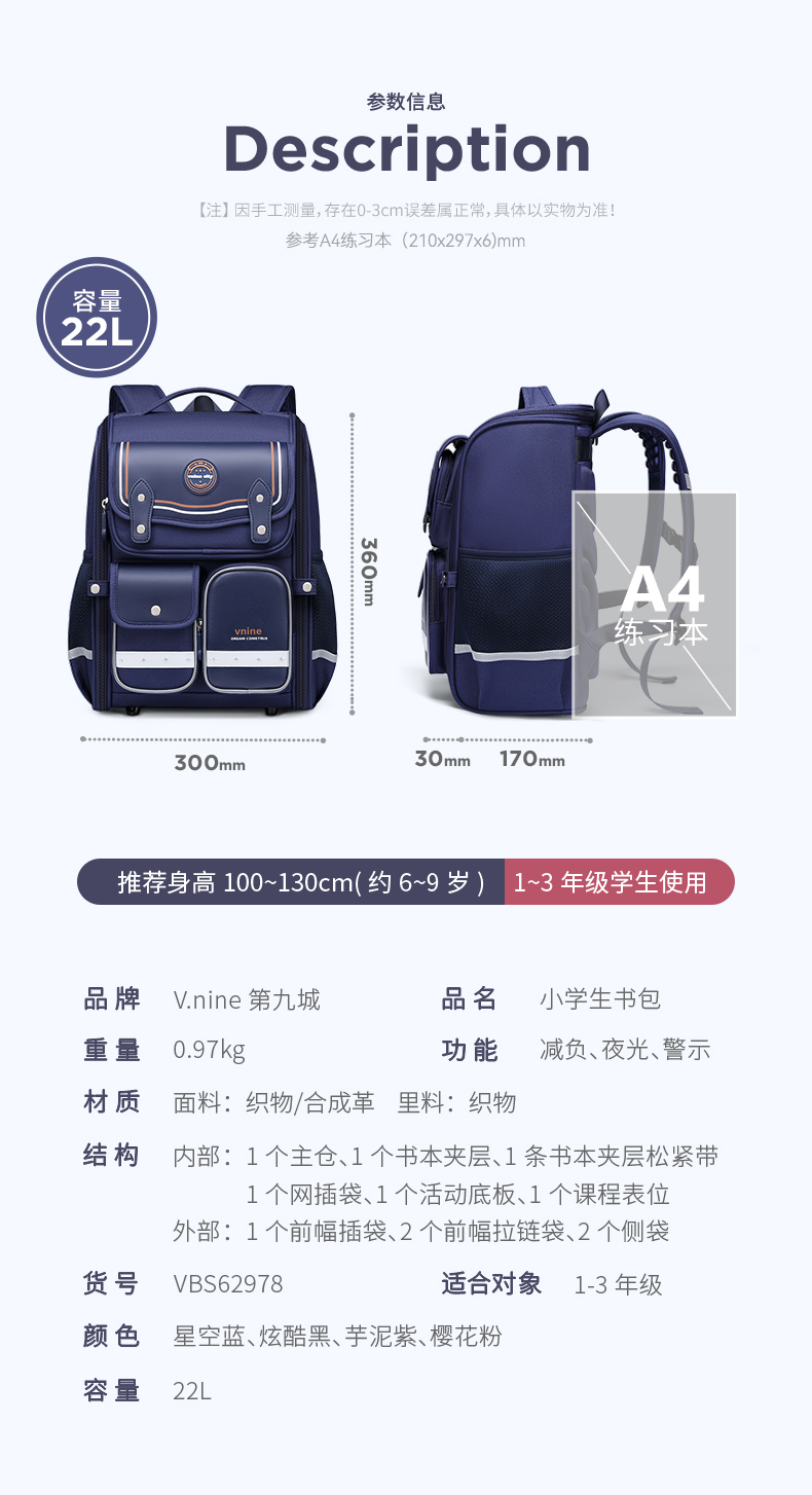 第九城 VBS62978 书包小学生1-6年级大容量护脊减负儿童书包多色可选