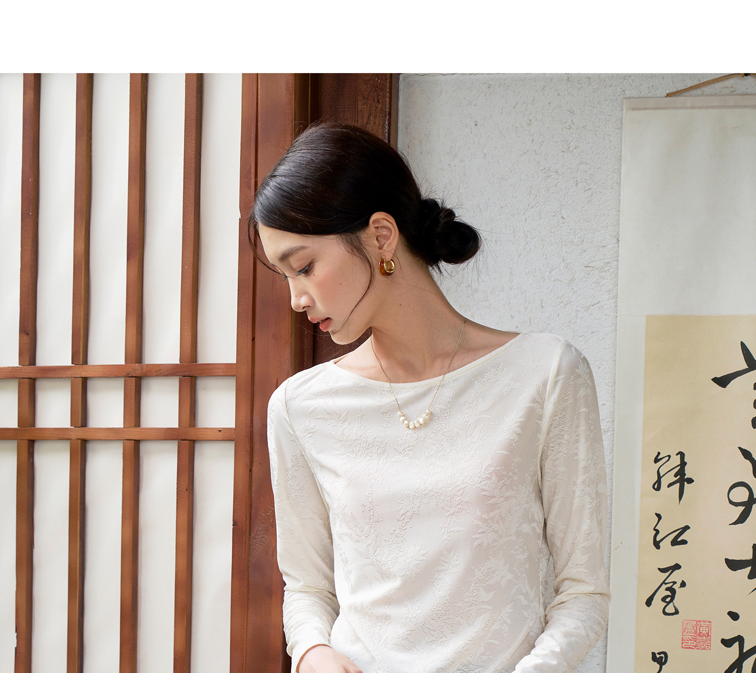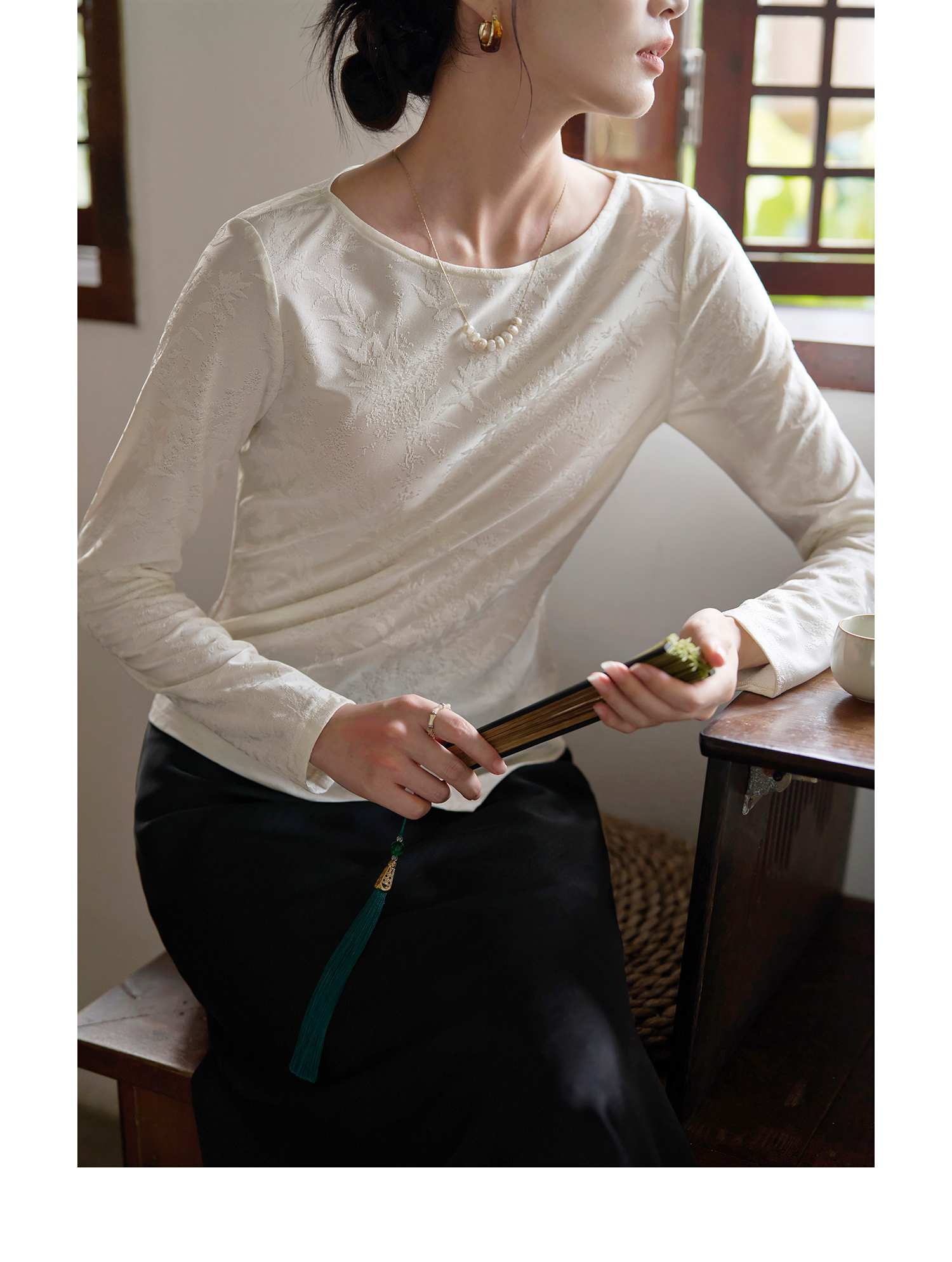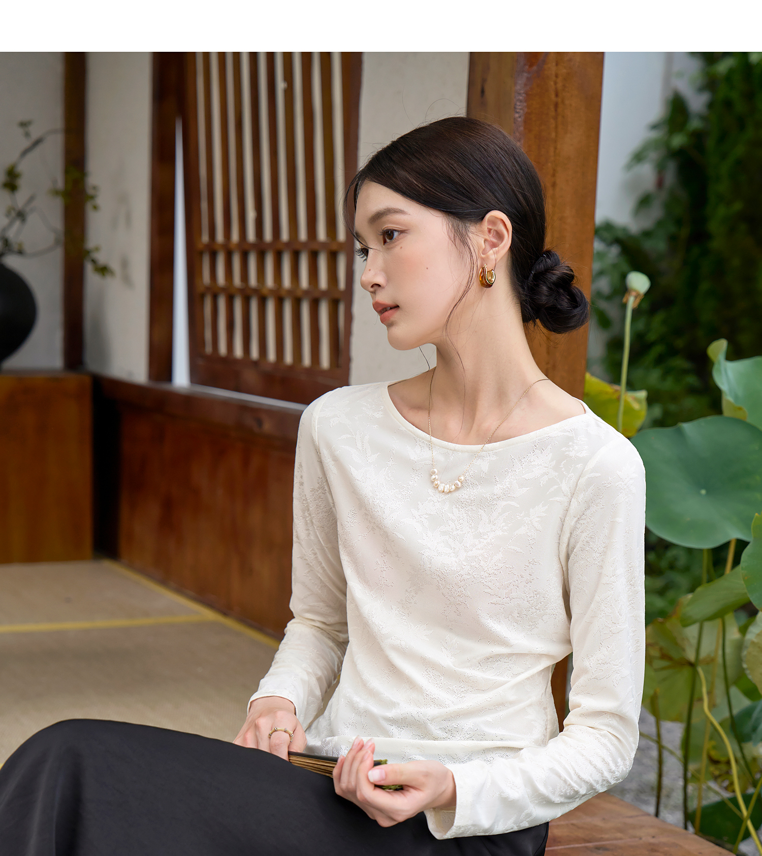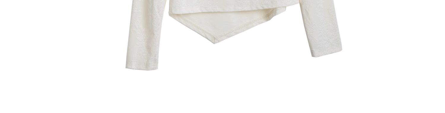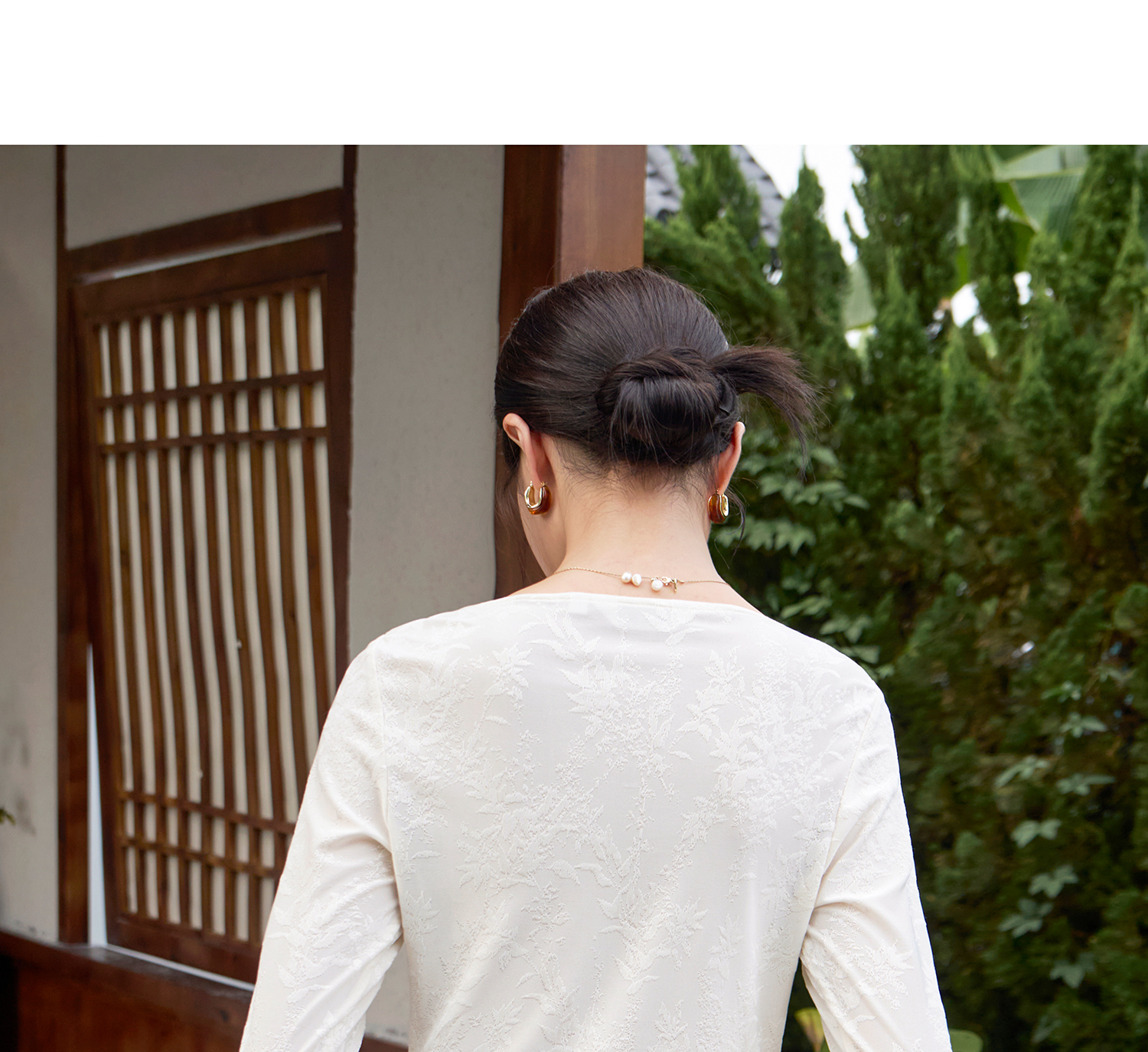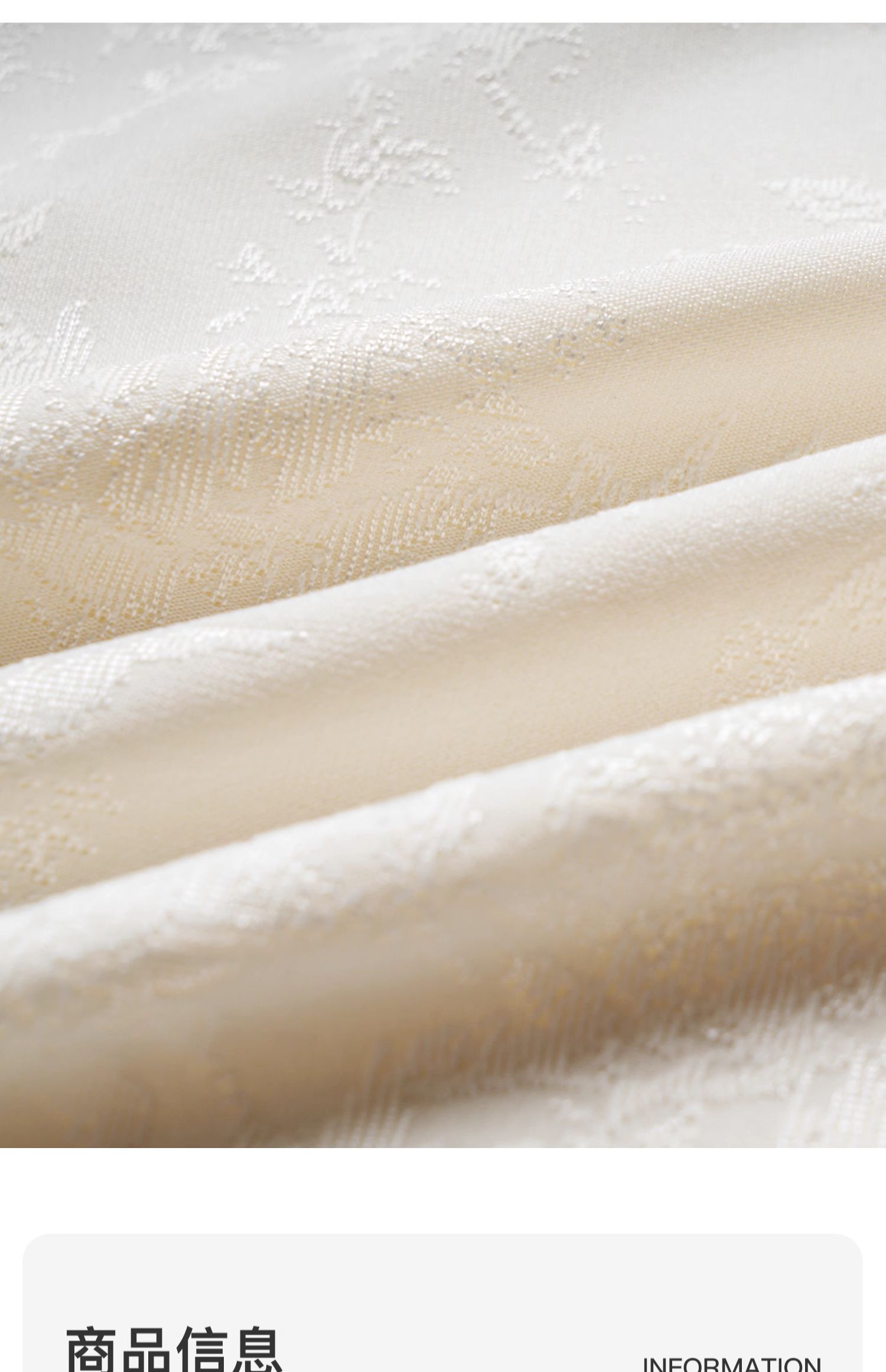 OLrain欧芮儿米杏色提花T恤女秋2024新款设计感不规则中国风上衣
