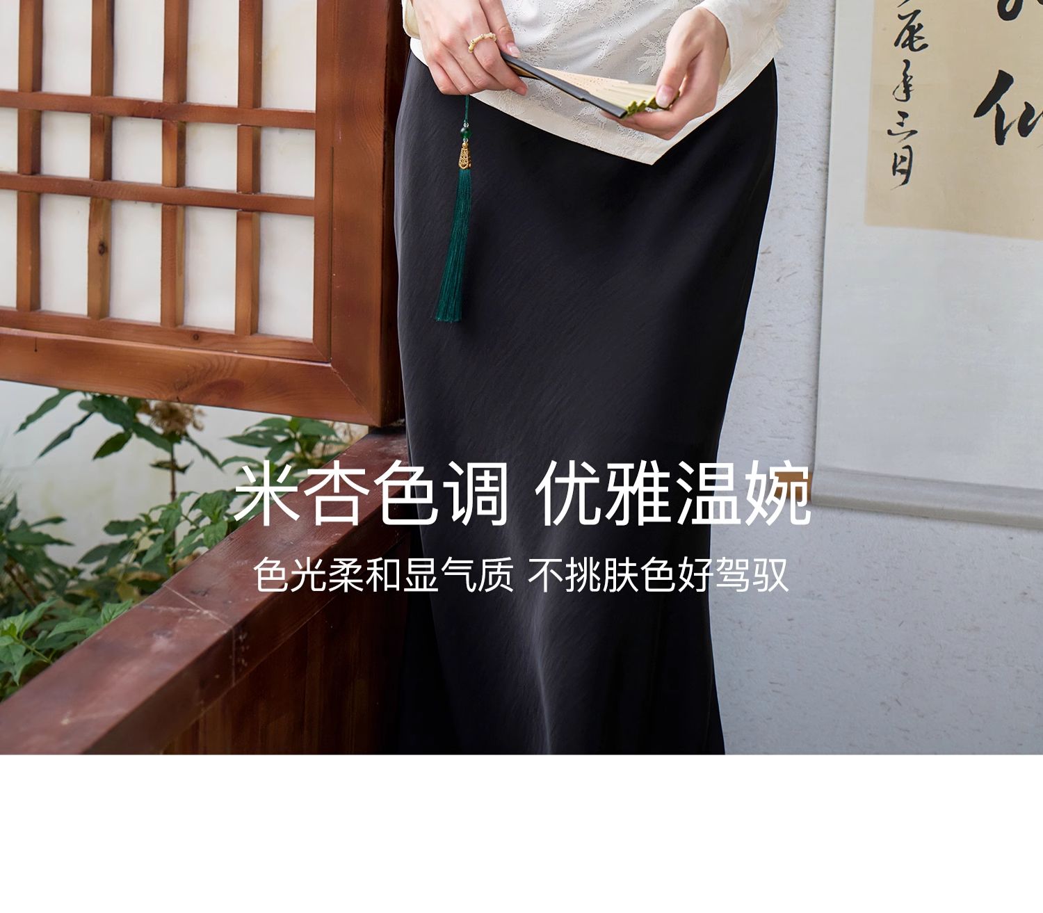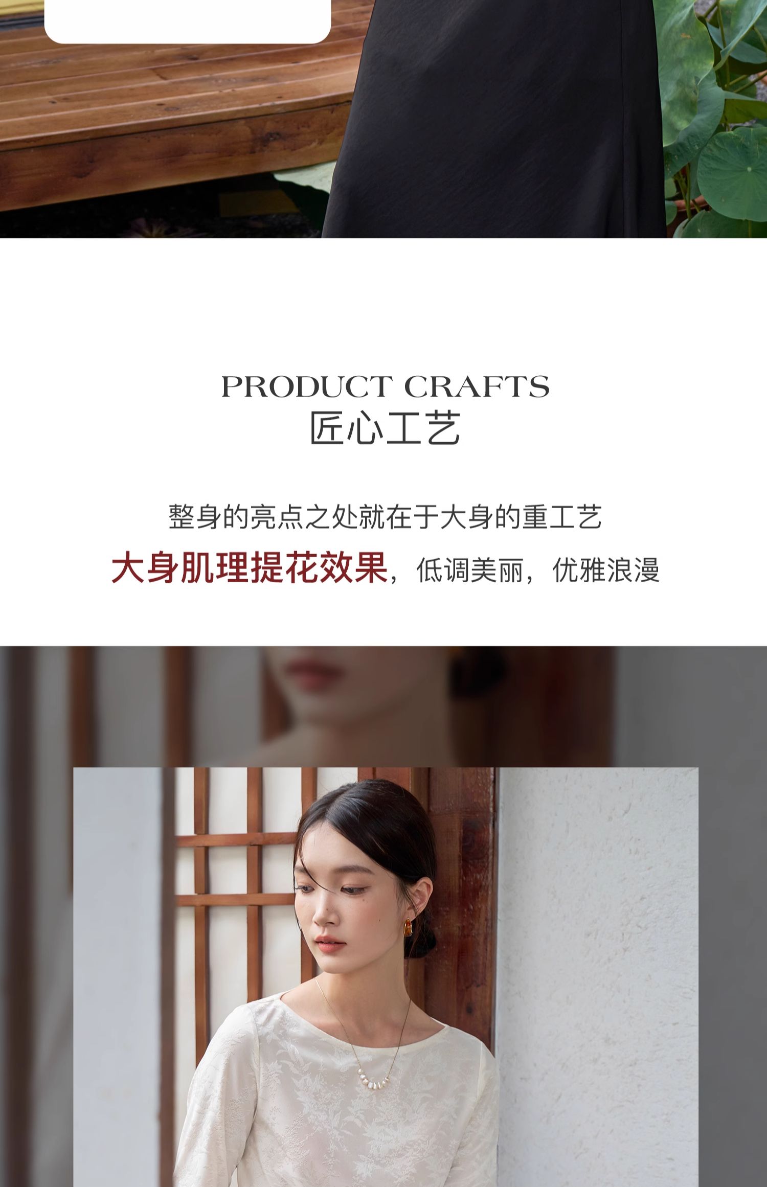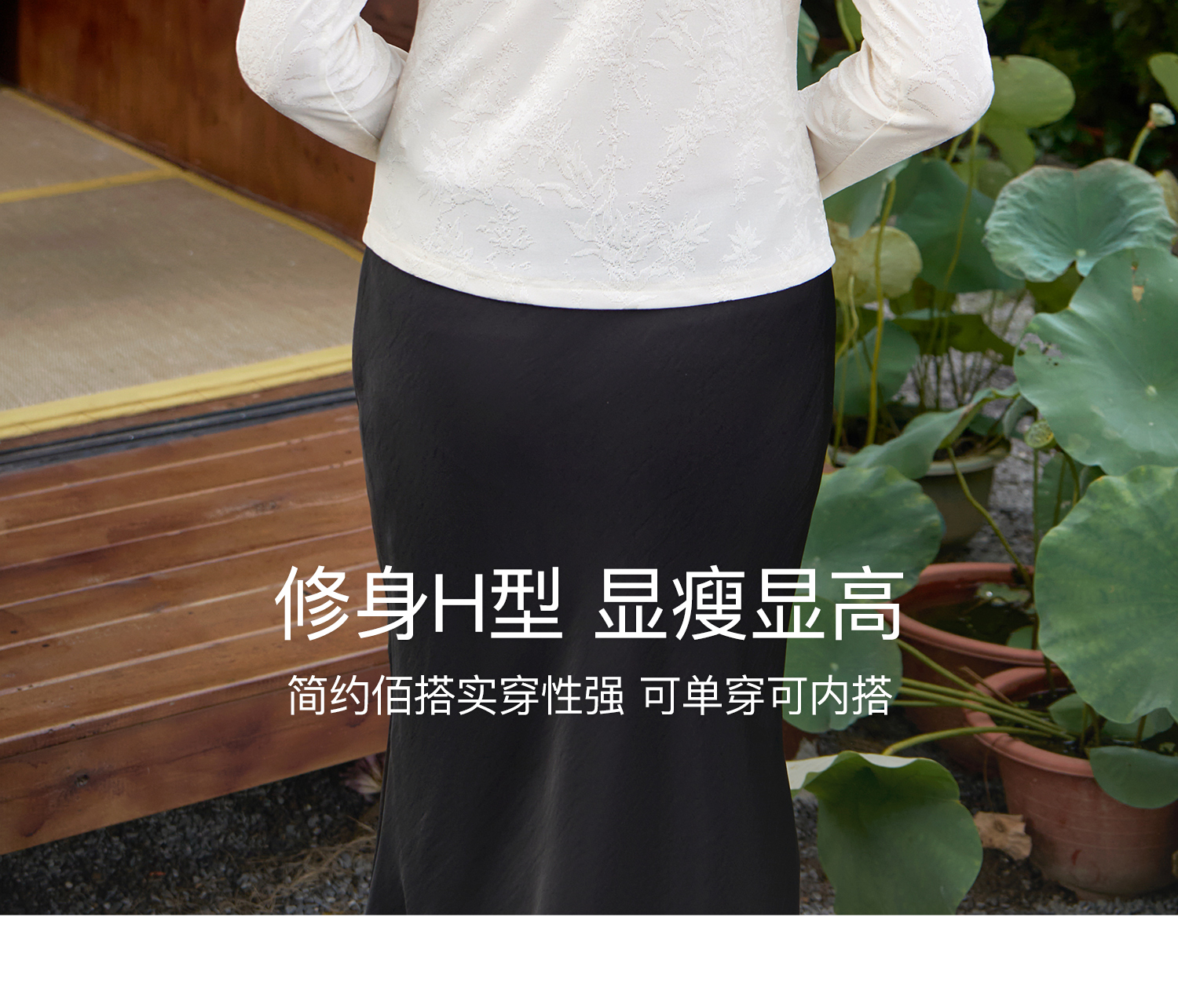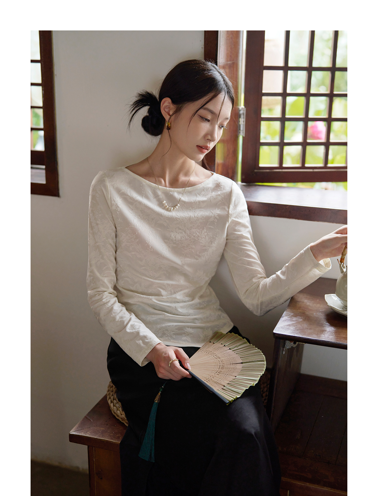 OLrain欧芮儿米杏色提花T恤女秋2024新款设计感不规则中国风上衣
