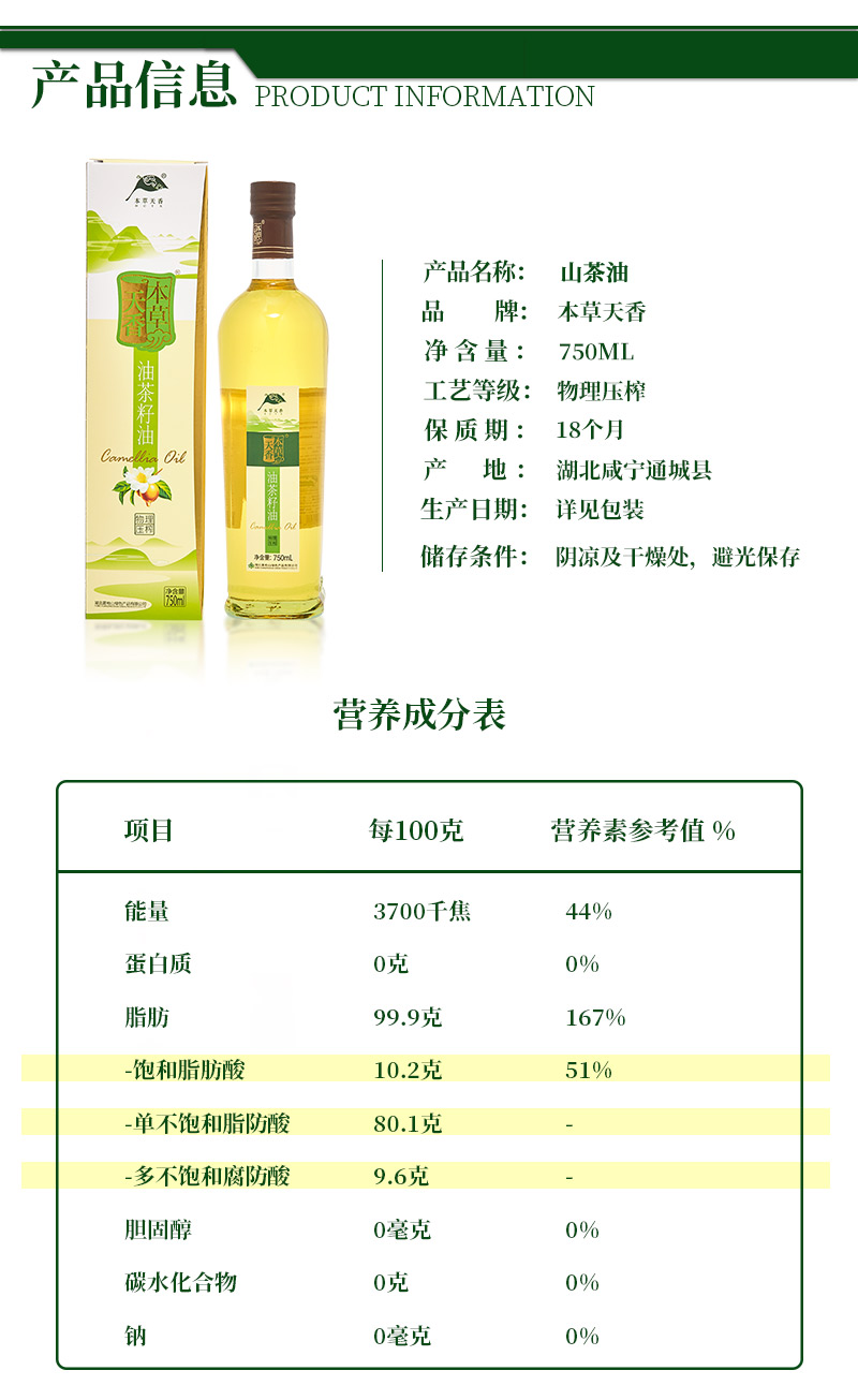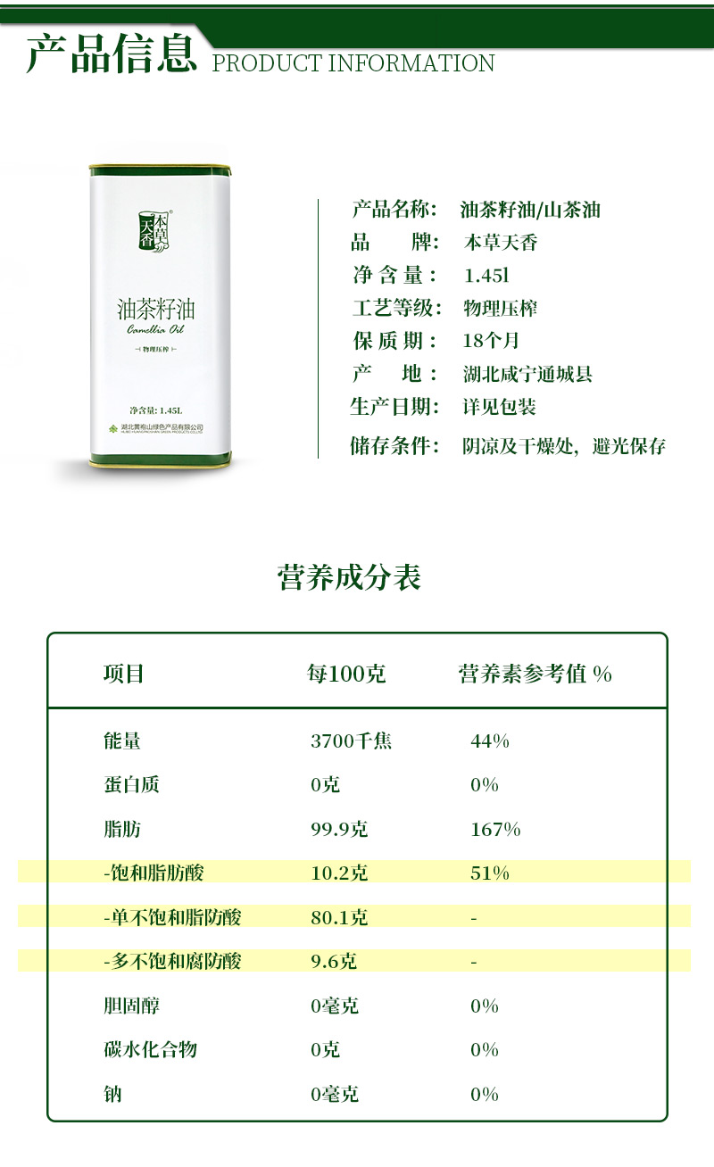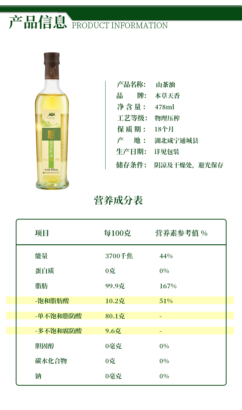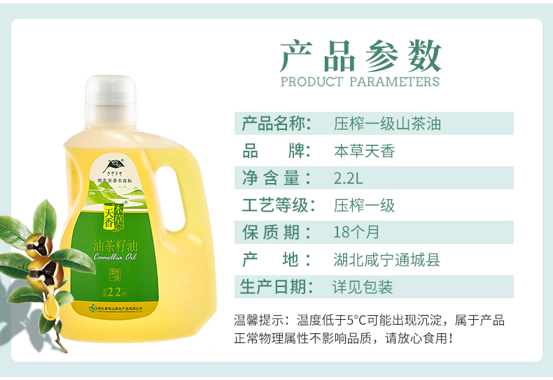 咸宁 本草天香 压榨一级山茶油
