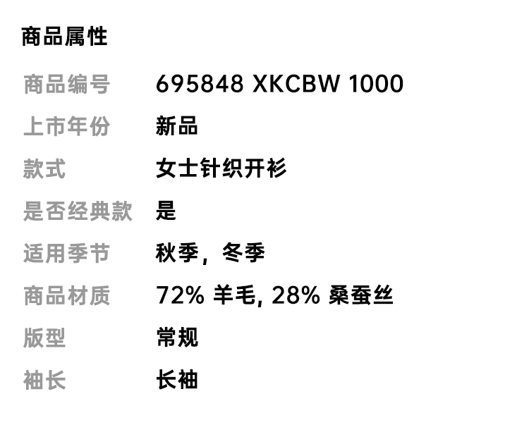 GUCCI 古驰 女士细羊毛针织开衫 黑色 695848 XKCBW 1000