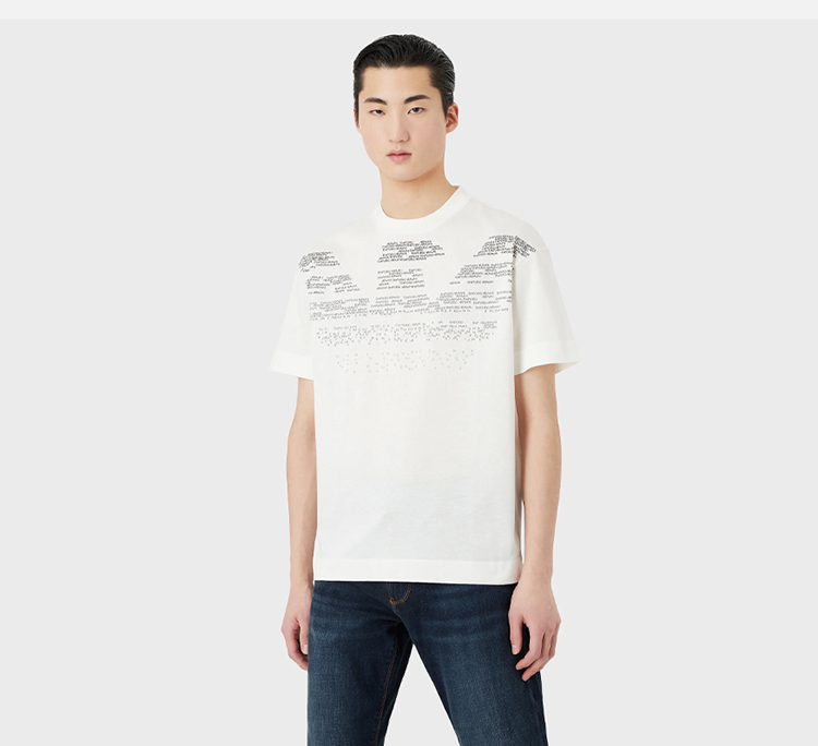 EMPORIO ARMANI 阿玛尼 男士棉质大号老鹰橡胶字母图案丝光平纹针织圆领短袖T恤 白色 3R1TV0 1JSAZ 0101