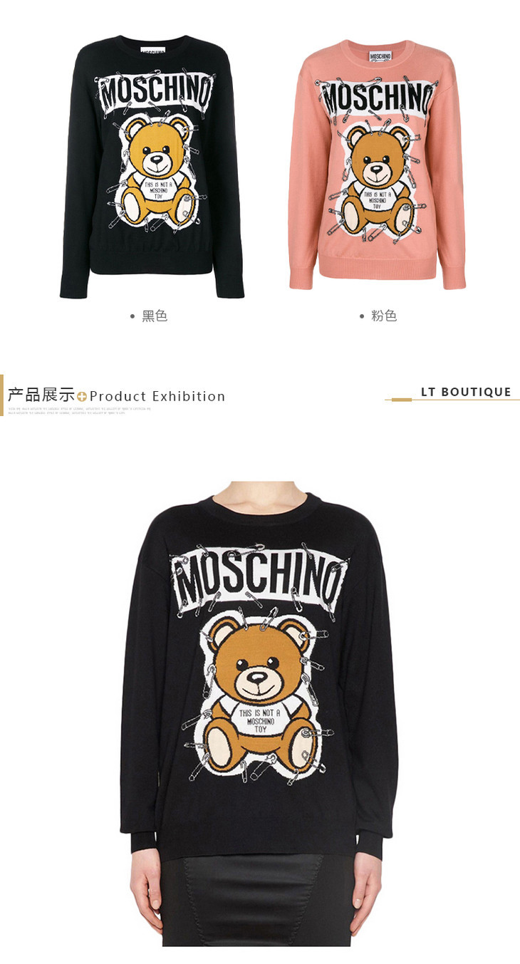 MOSCHINO 莫斯奇诺女装 小熊舒适图案时尚羊毛针织衫 黑色 0919 5501 1555