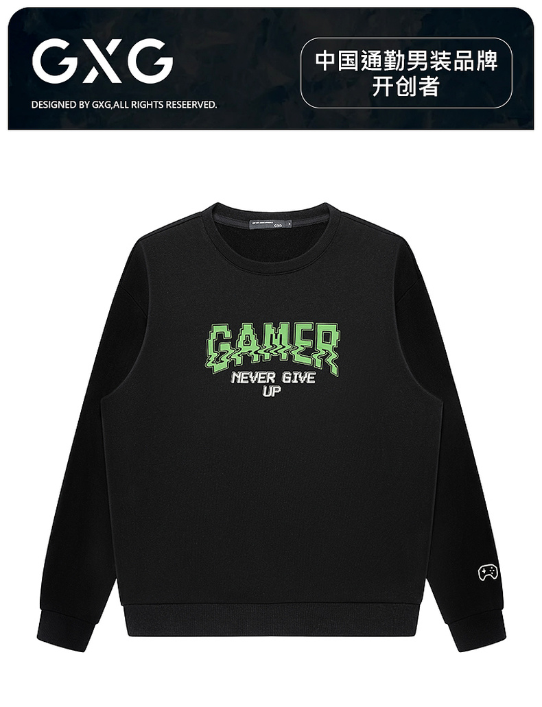 GXG男装【100%棉】秋季时尚夜光字母舒适百搭亲肤男式圆领卫衣K&C