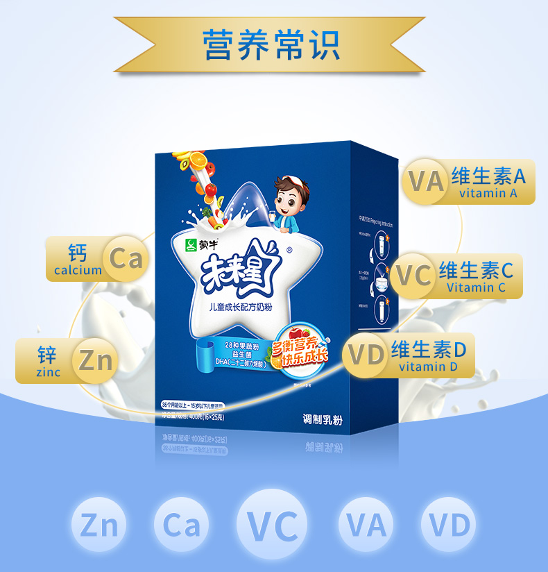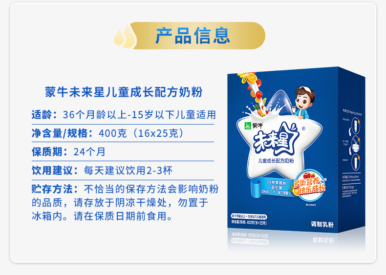 蒙牛未来星儿童成长奶粉400g 4段配方 小学生 青少年 高钙 小条装