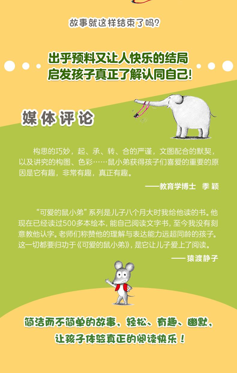 2004年,“可爱的鼠小弟”漂洋过海来到中国,被无数家长和孩子同时接纳和喜爱,2005年评为全国童书排行榜top1,获得包括《人民日报》在内的诸多主流媒体、专业阅读推广机构的认可和推荐,入选中国儿童分级阅读书目、中国幼儿基础阅读书目等。目前,“可爱的鼠小弟”销量已超过1500万册,长期位列各大网站童书畅销榜单,已是名副其实的儿童必读绘本。