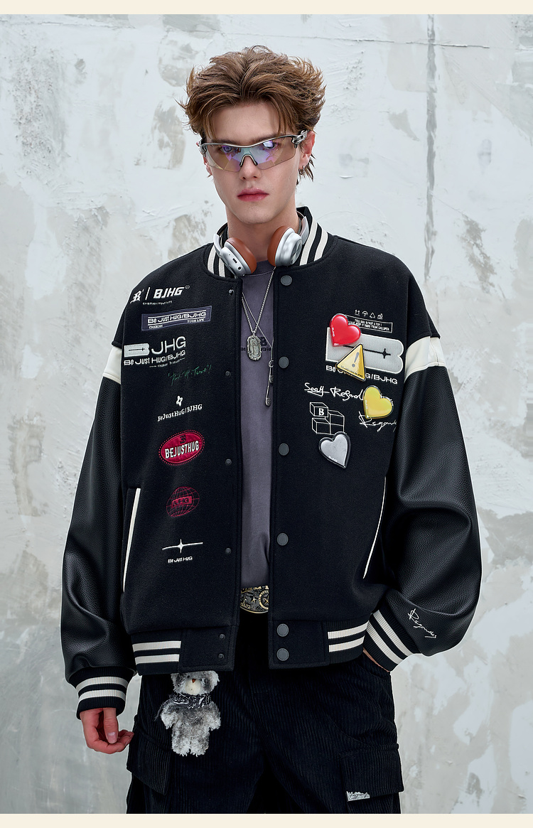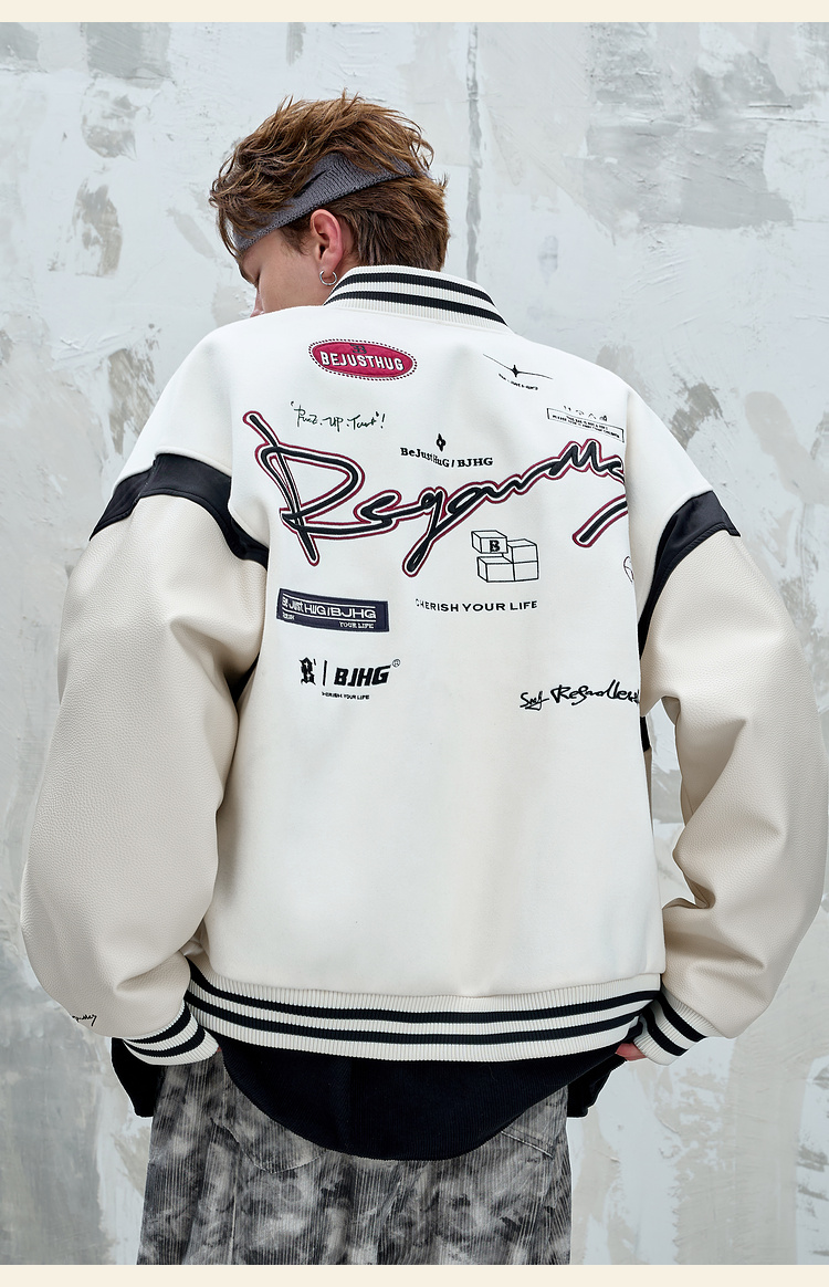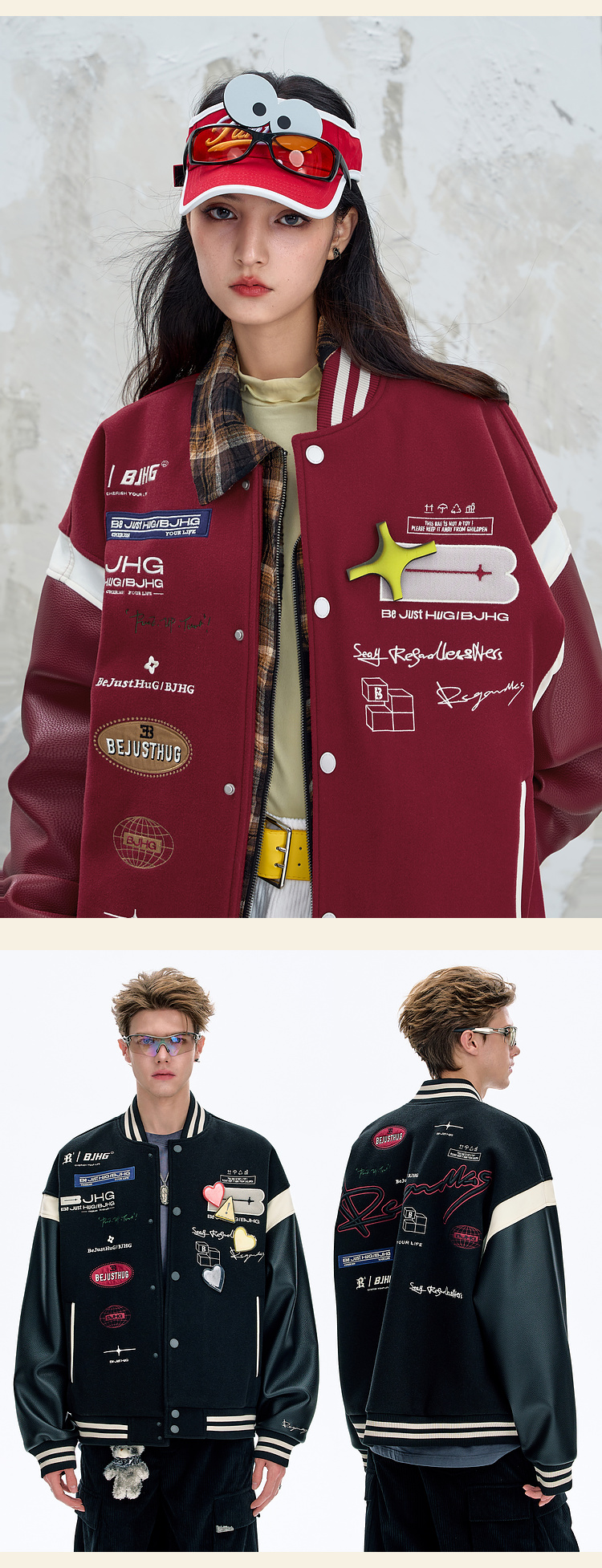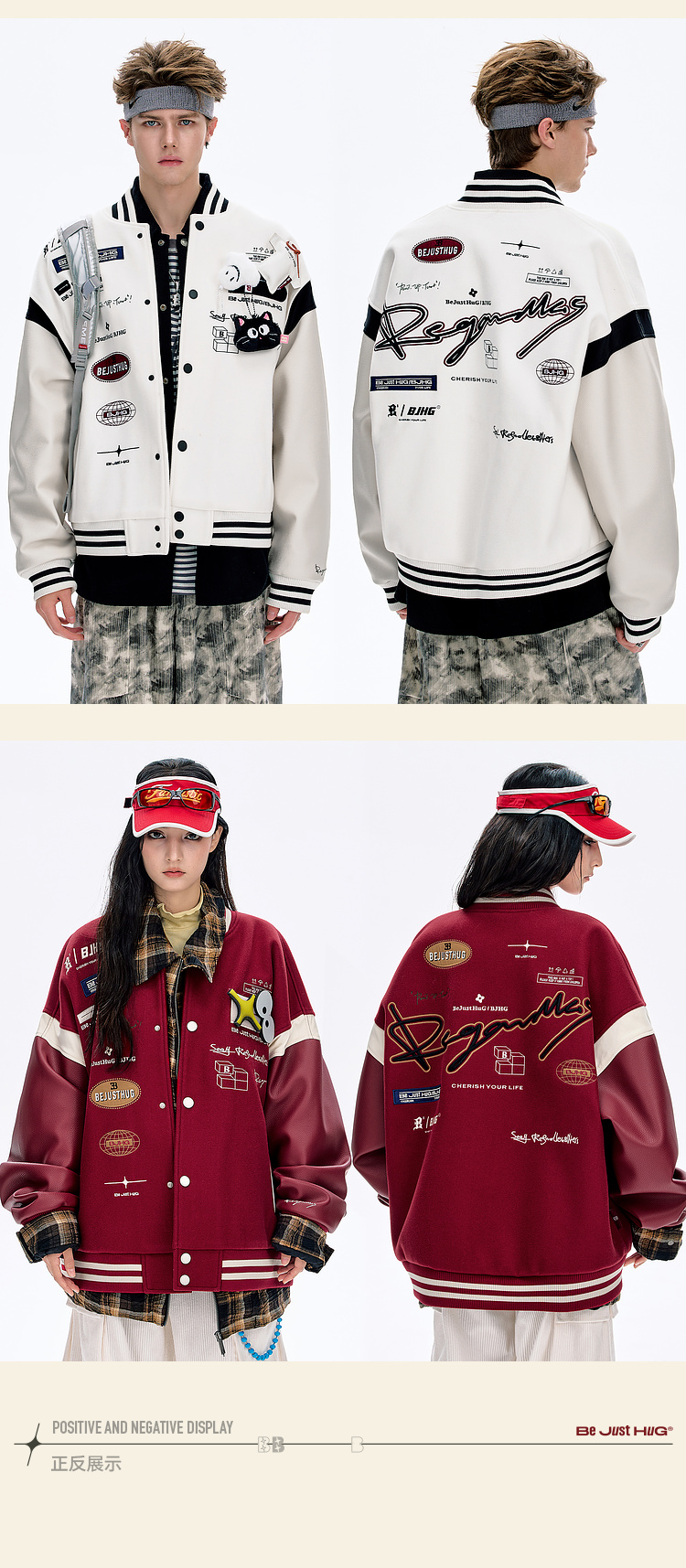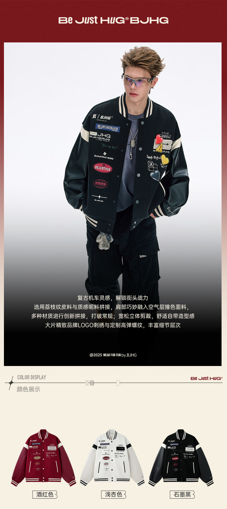 BJHG不计后果复古机车外套男款秋季美式潮流新款情侣棒球服夹克女