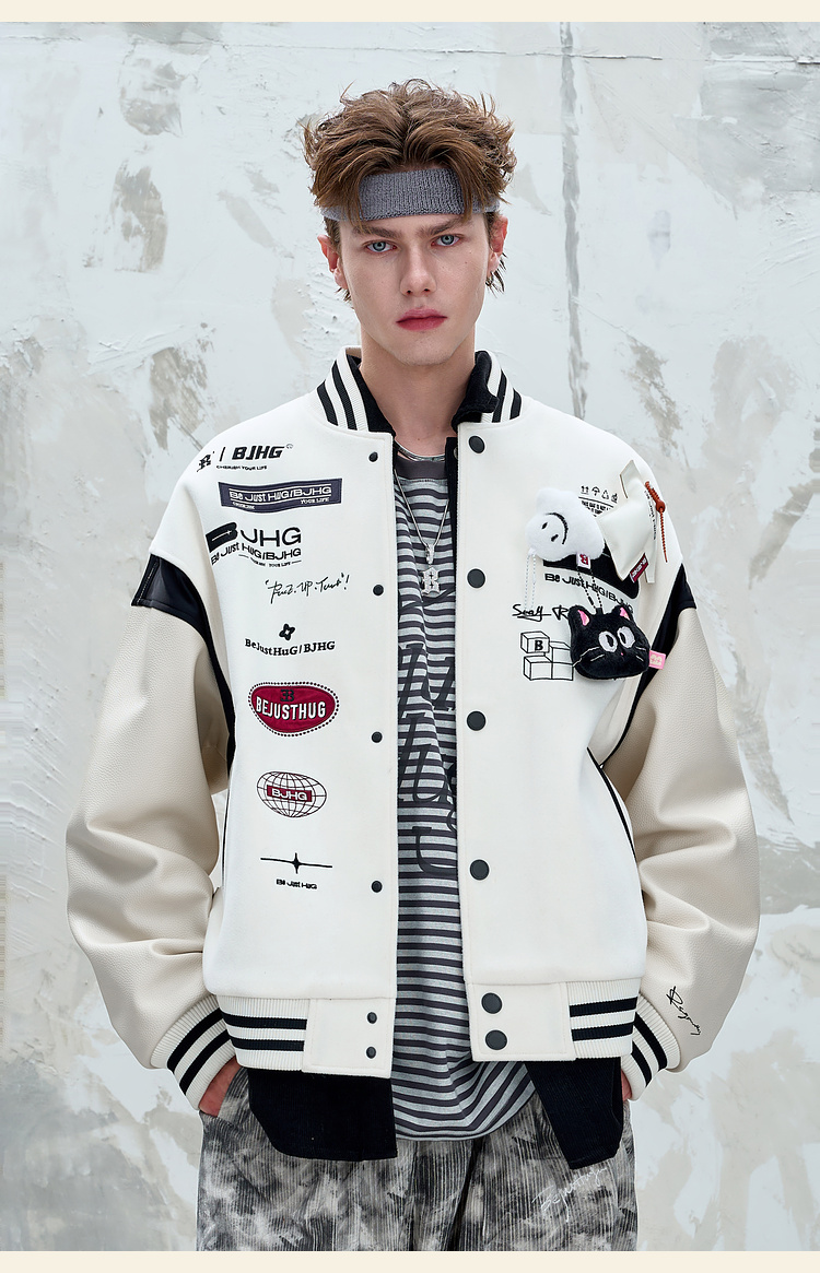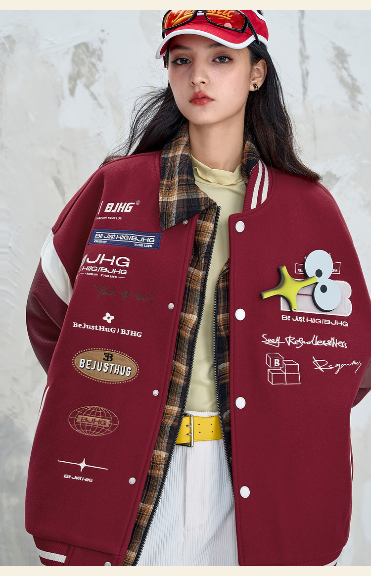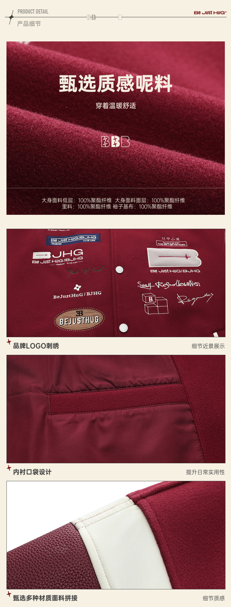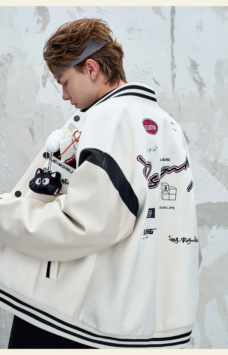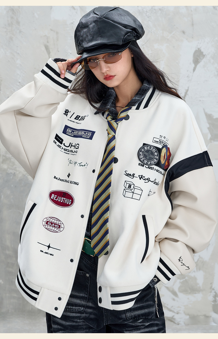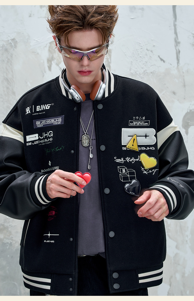 BJHG不计后果复古机车外套男款秋季美式潮流新款情侣棒球服夹克女