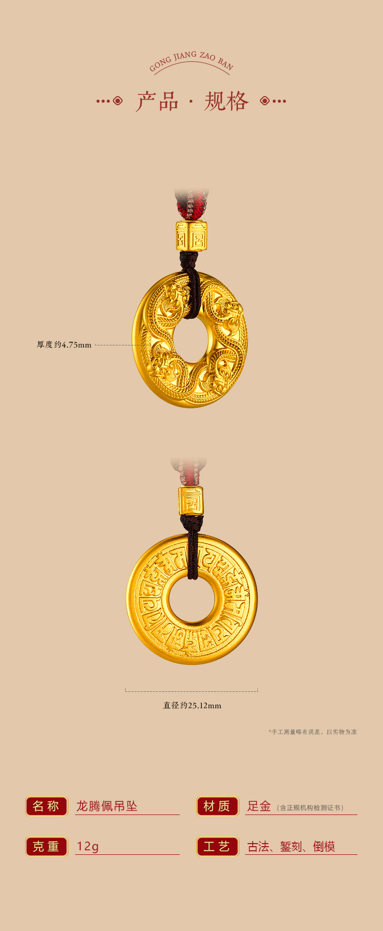 宫匠造办 龙腾佩黄金吊坠