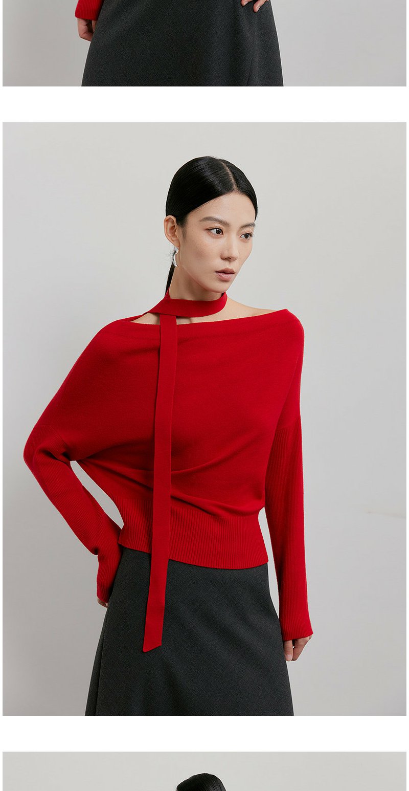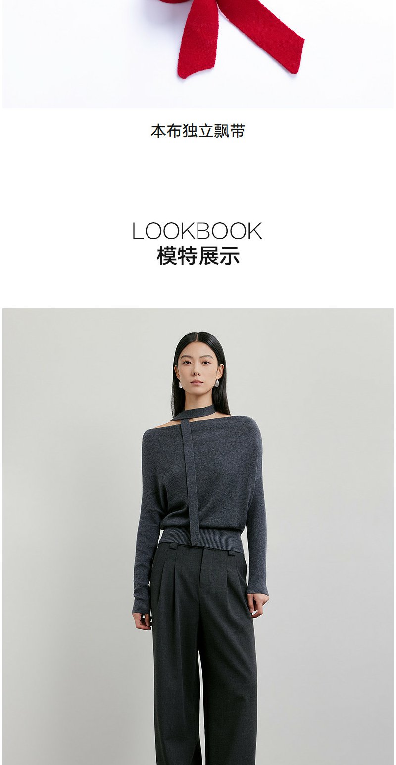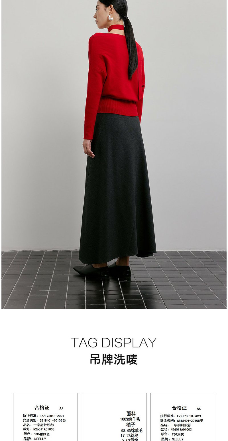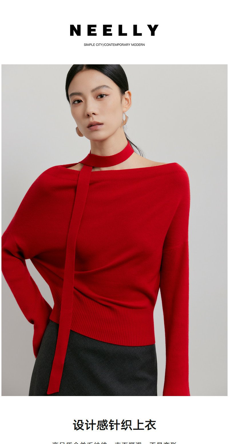 NEELLY纳俪商场同款春季新款设计感收腰针织衫女飘带修身气质上衣N26011A01003