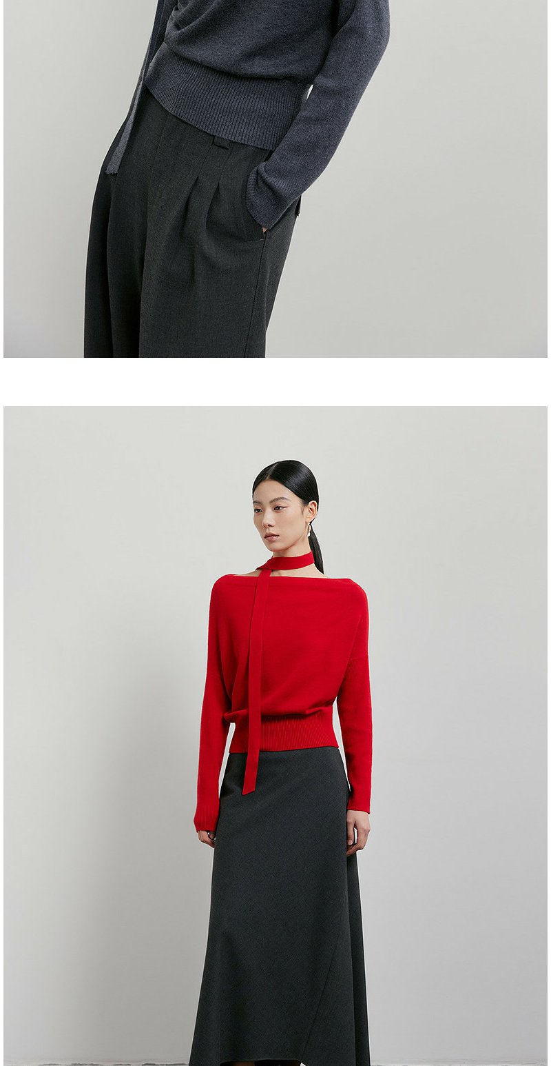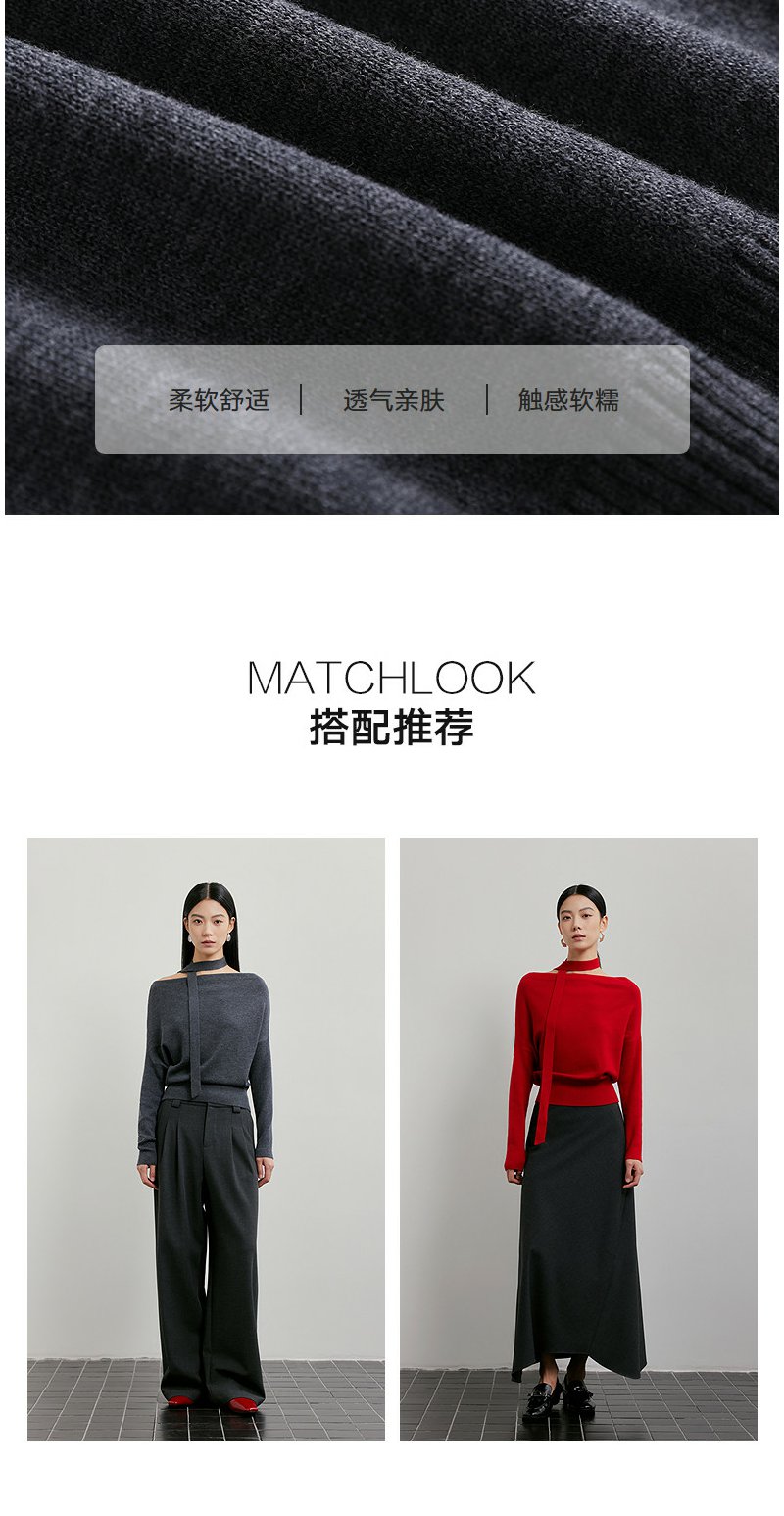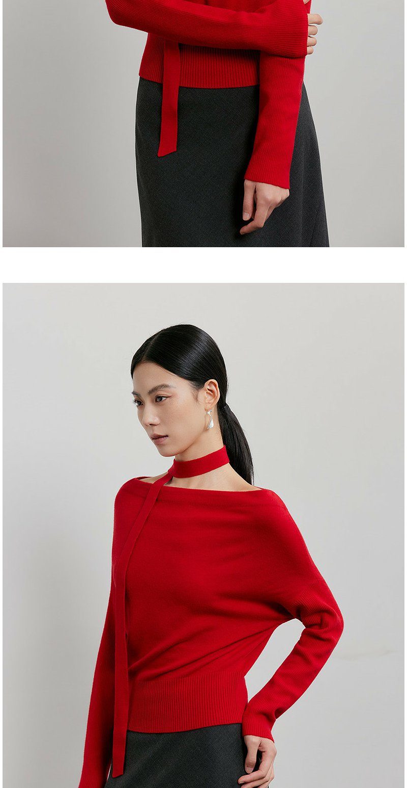 NEELLY纳俪商场同款春季新款设计感收腰针织衫女飘带修身气质上衣N26011A01003