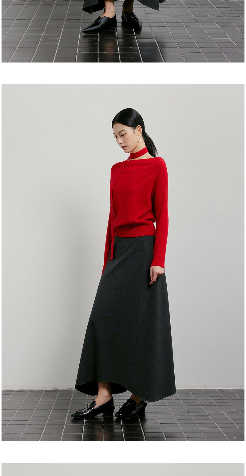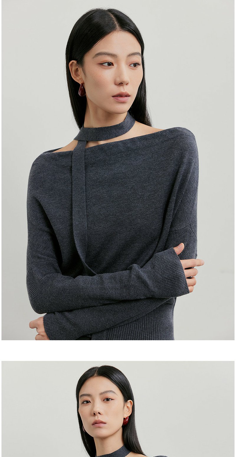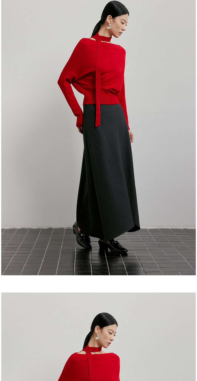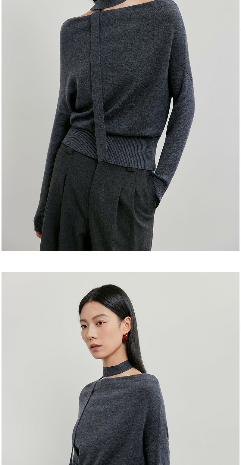 NEELLY纳俪商场同款春季新款设计感收腰针织衫女飘带修身气质上衣N26011A01003