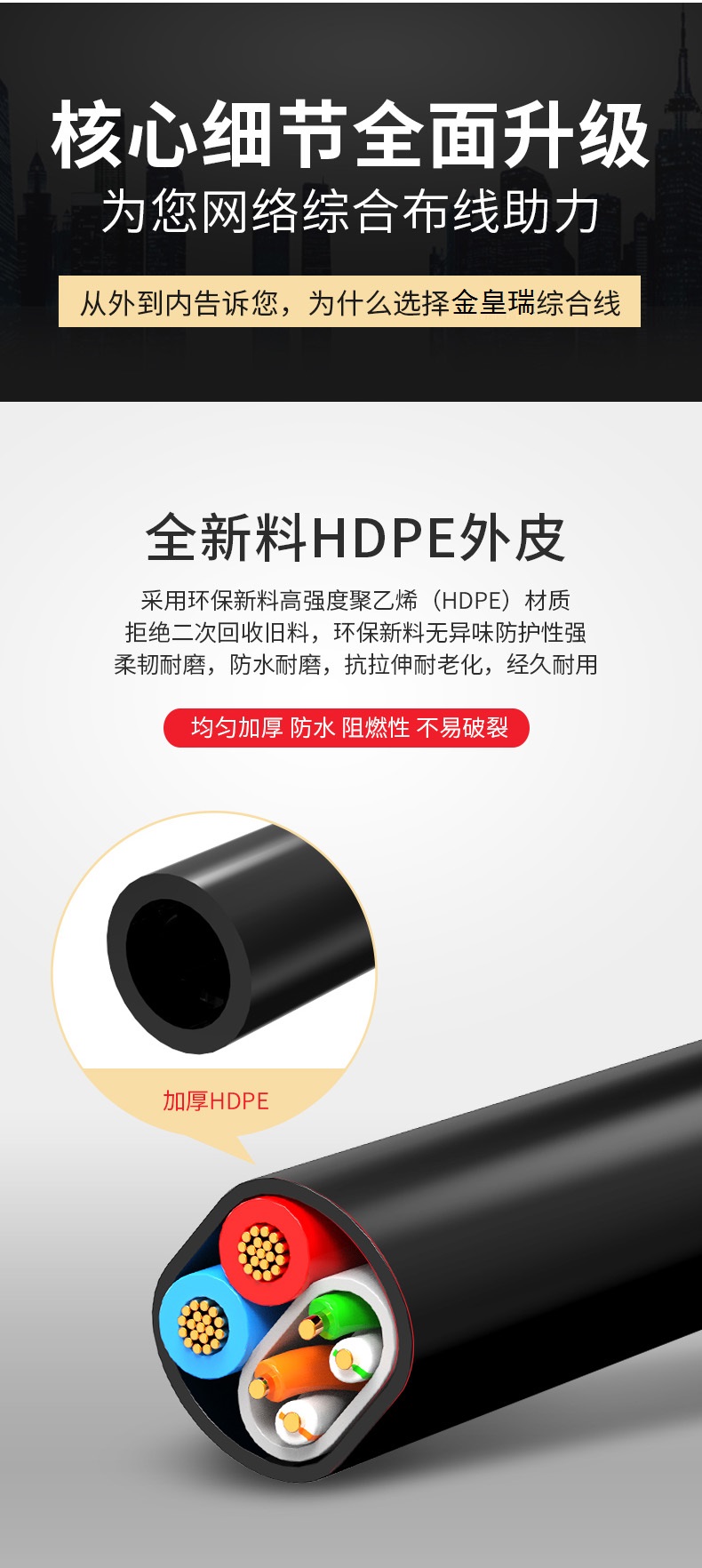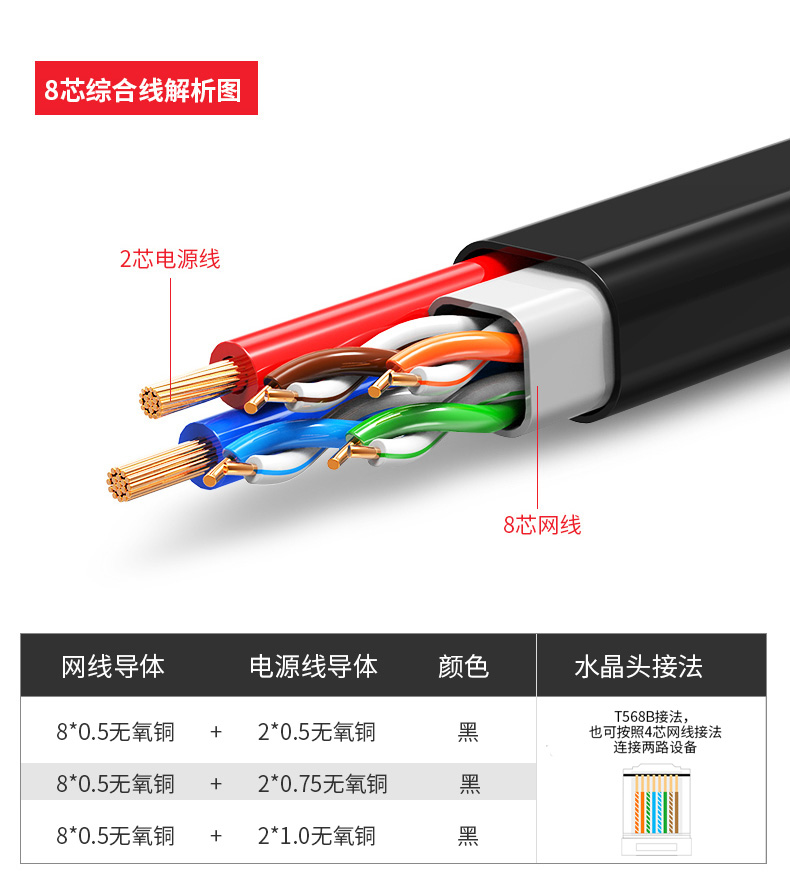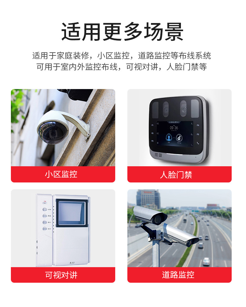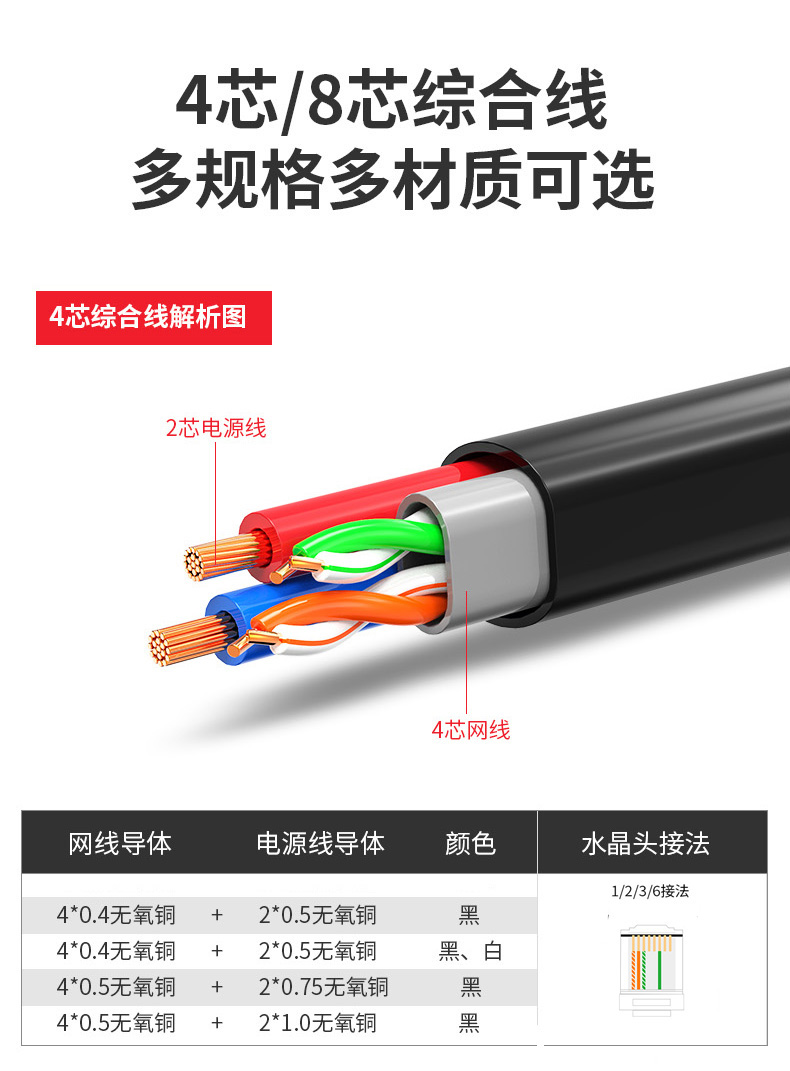 商品名称:爆款 无氧铜【4芯网线+0.5电源线】室外双层护套抗拉无氧铜综合线 4芯网线带2芯电源复合一体线 安防监控 车牌识别 道闸 门禁 楼宇对讲工程专用 喷码300米
