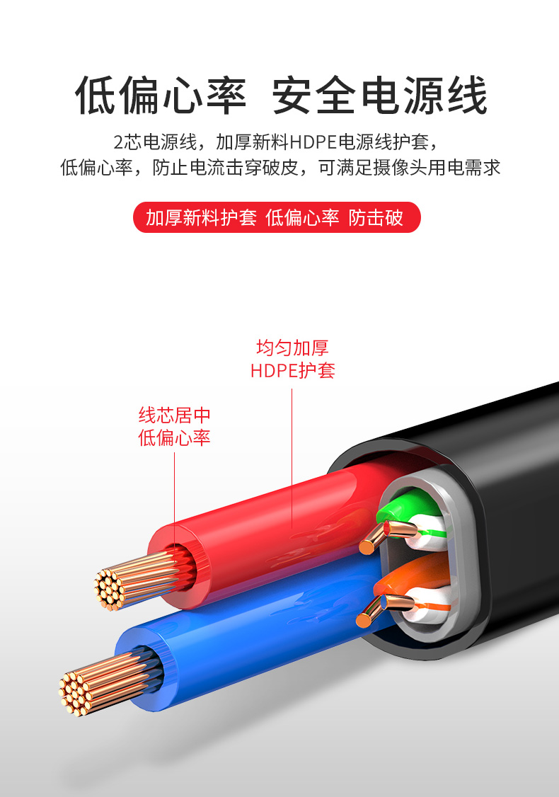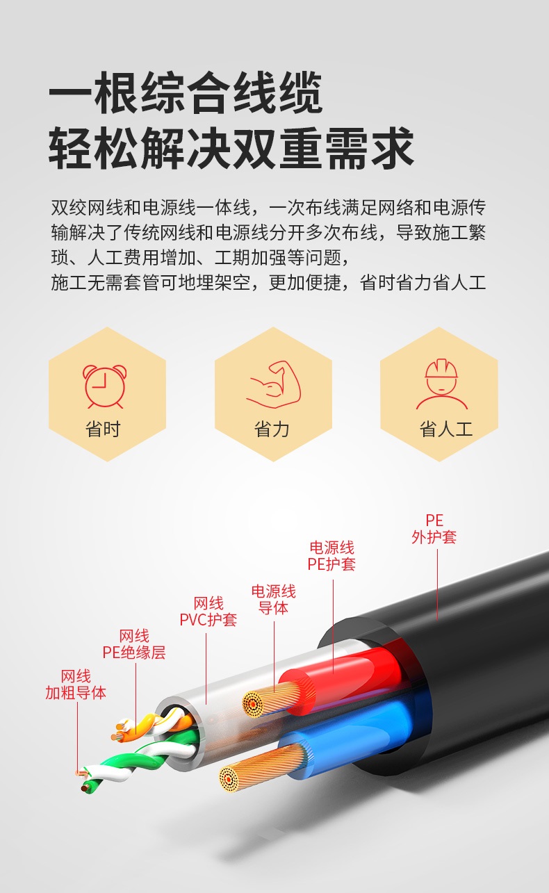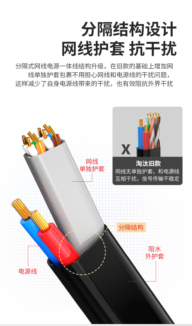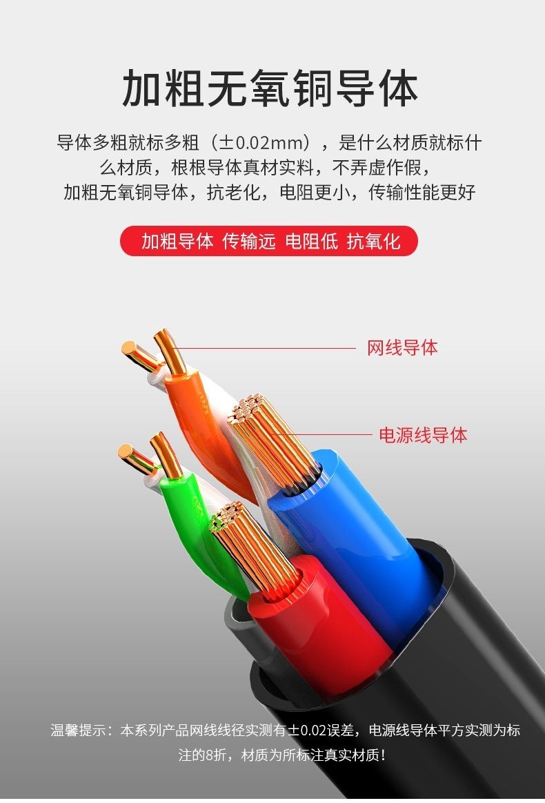 爆款★热销@无氧铜【4芯无氧铜网线+0.5无氧铜电源线】室外双层护套抗拉无氧铜综合线 4芯网线带2芯电源复合一体线 安防监控 车牌识别 道闸 门禁 楼宇对讲工程专用 喷码300米