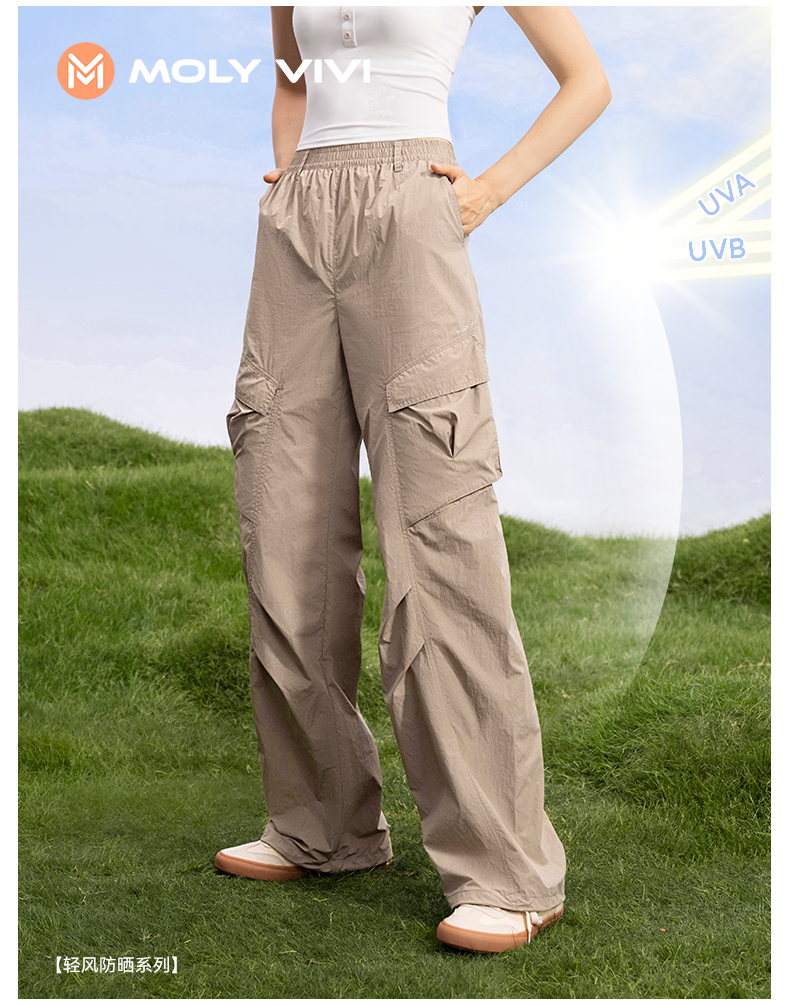 MOLYVIVI工装风休闲防晒裤女2025春夏新款凉感防紫外线冰丝阔腿裤
