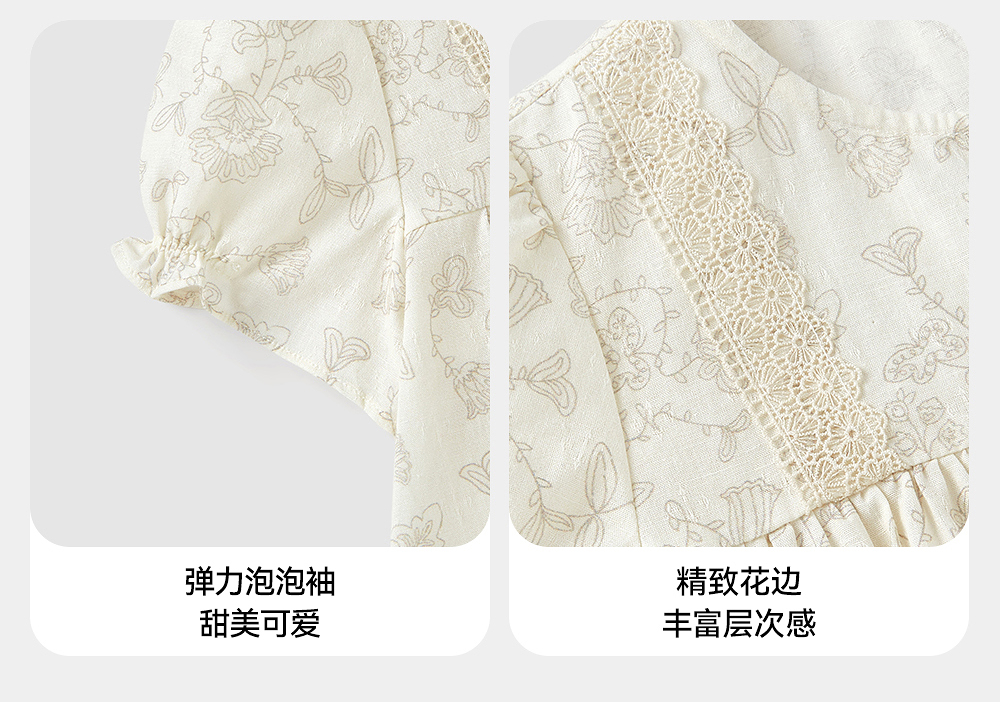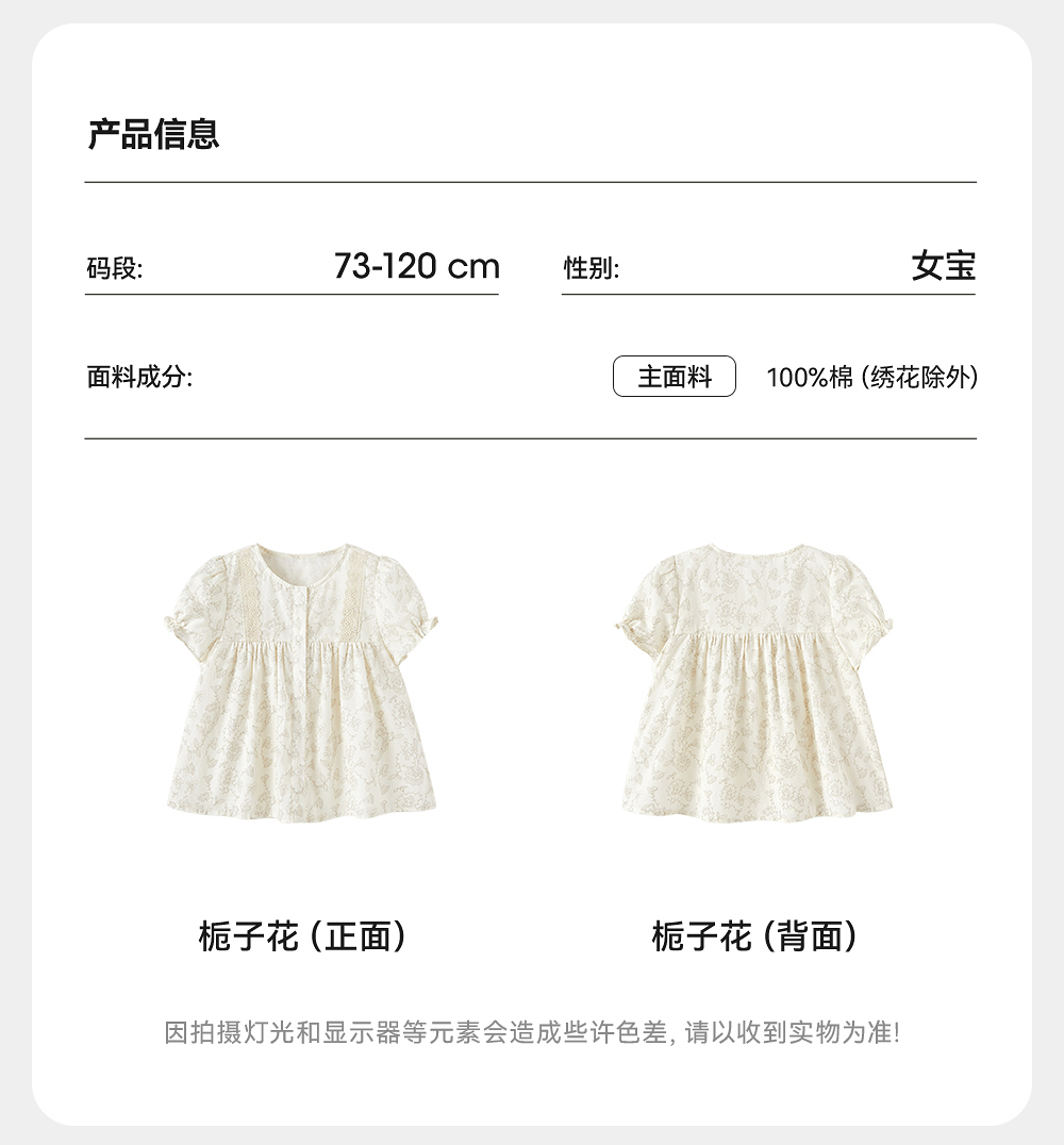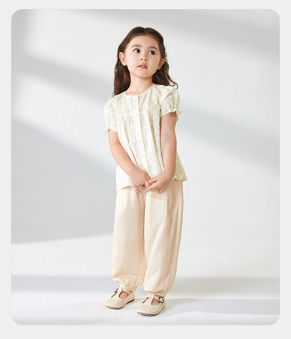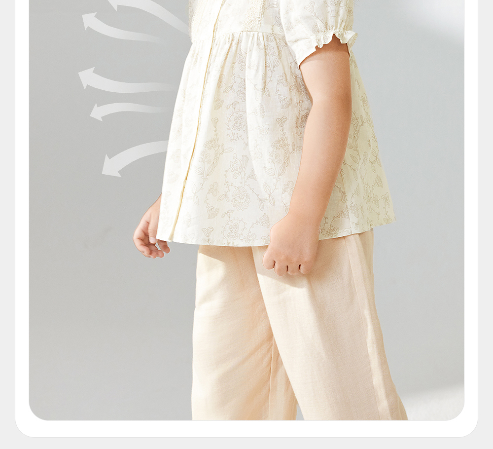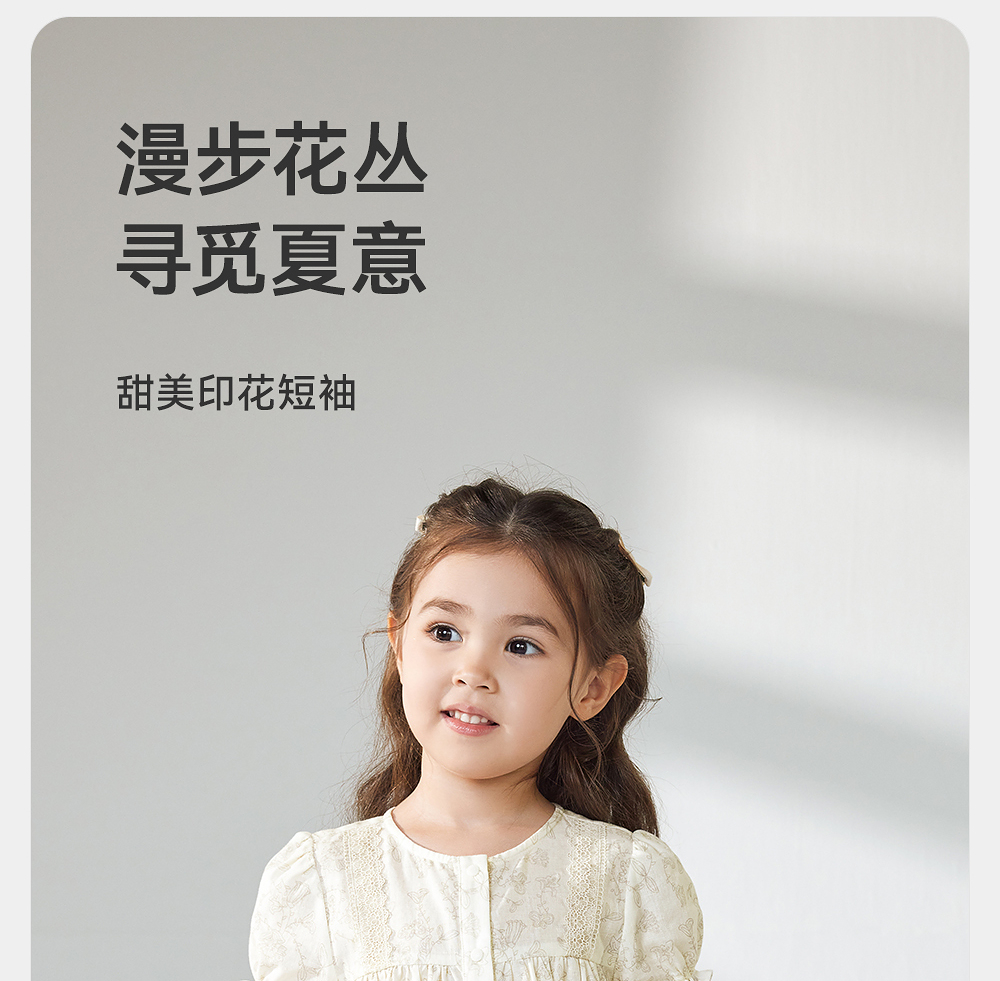 英氏儿童衬衫夏季透气短袖女童衬衫印花衬衣2025新款YRCCJ2R050A