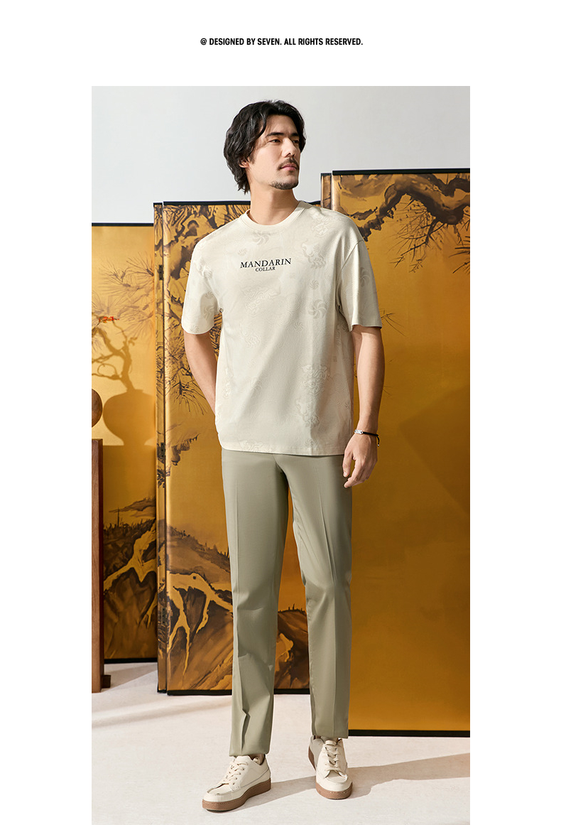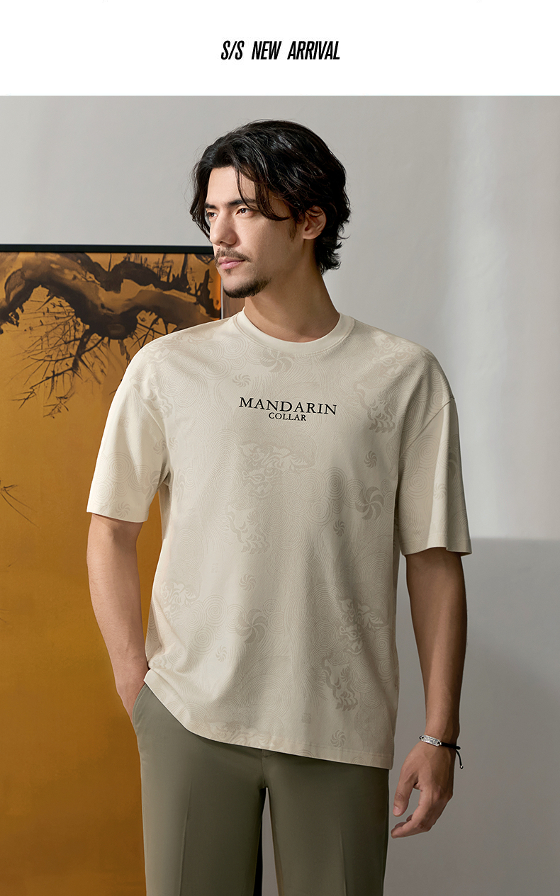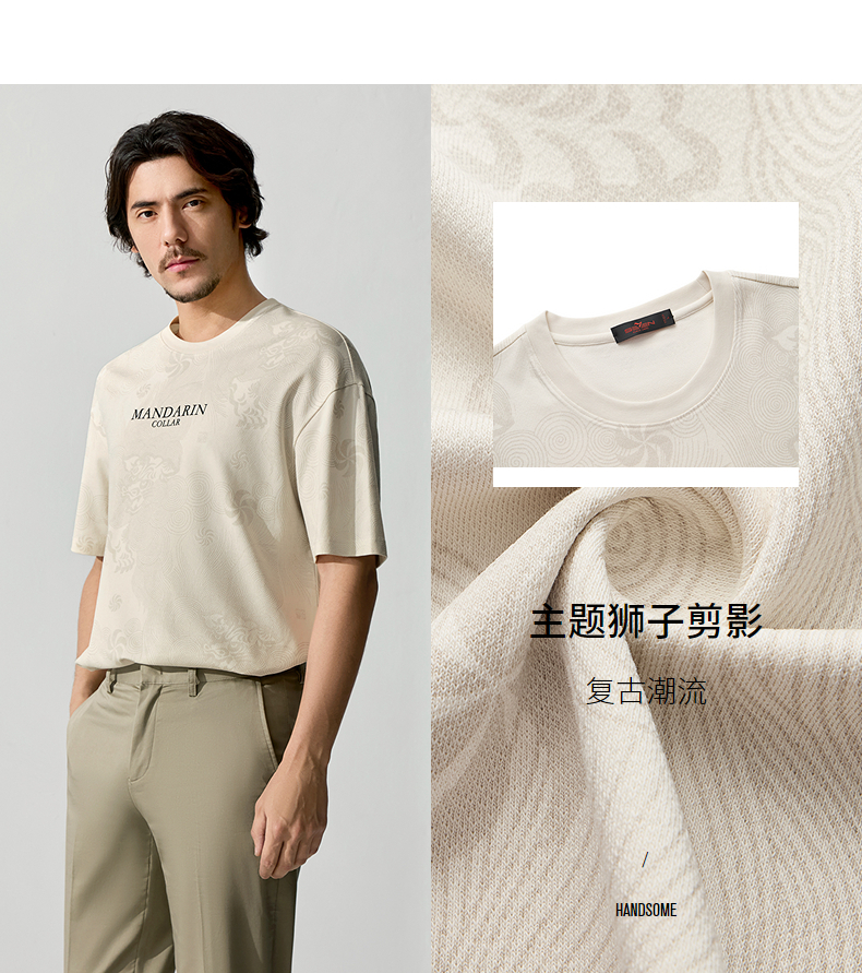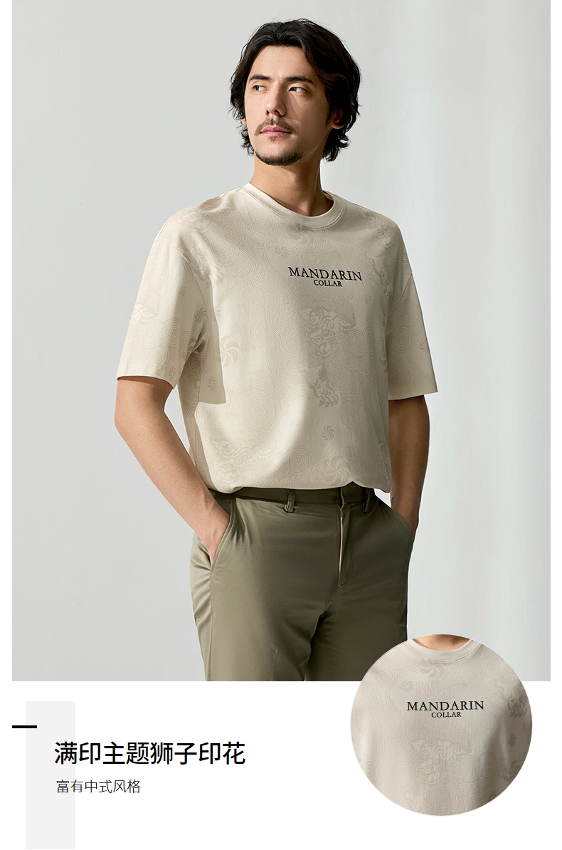 【刘冠逸同款】柒牌短袖T恤男夏季新品狮子印花时尚百搭圆领体恤衫128T72690