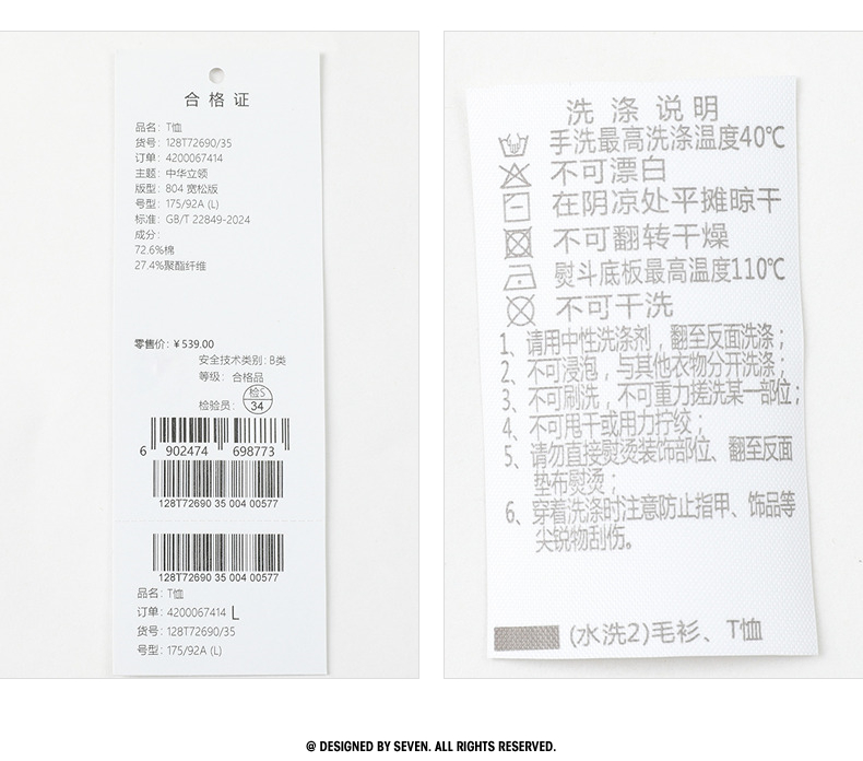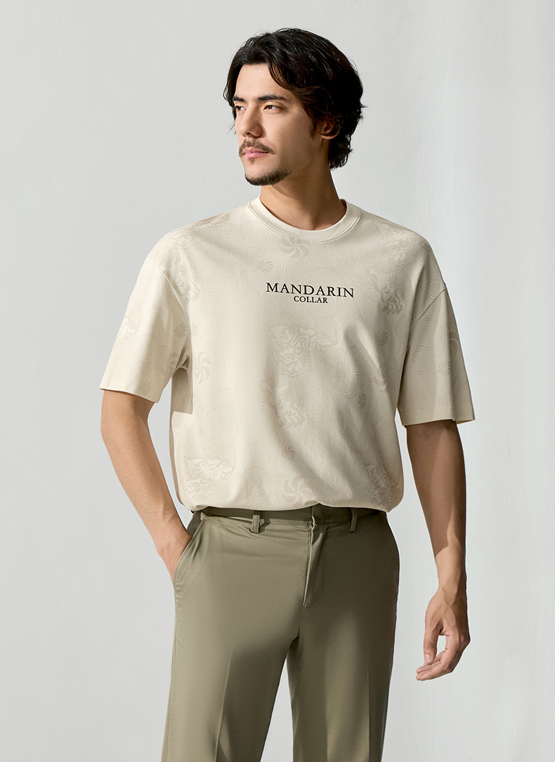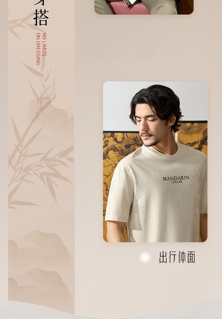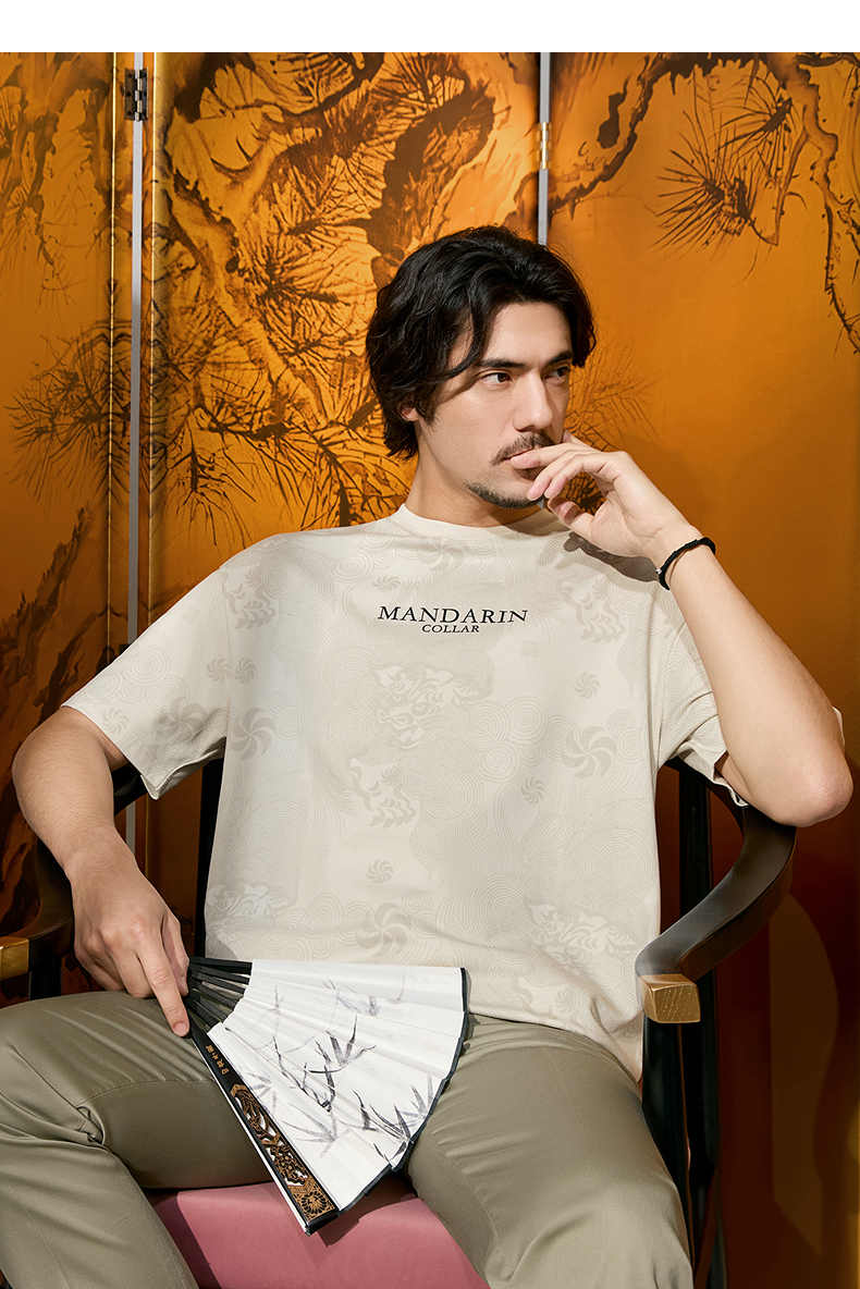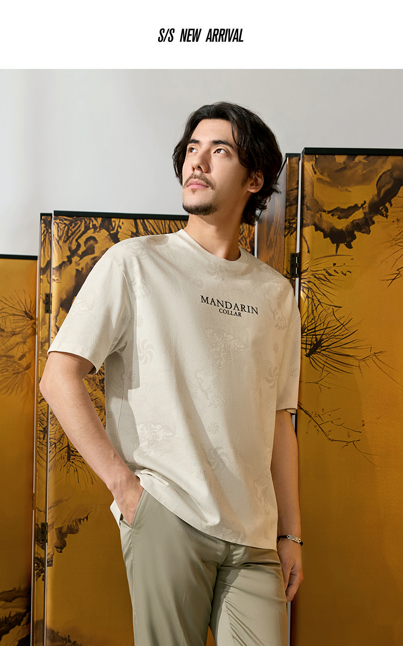 【刘冠逸同款】柒牌短袖T恤男夏季新品狮子印花时尚百搭圆领体恤衫128T72690