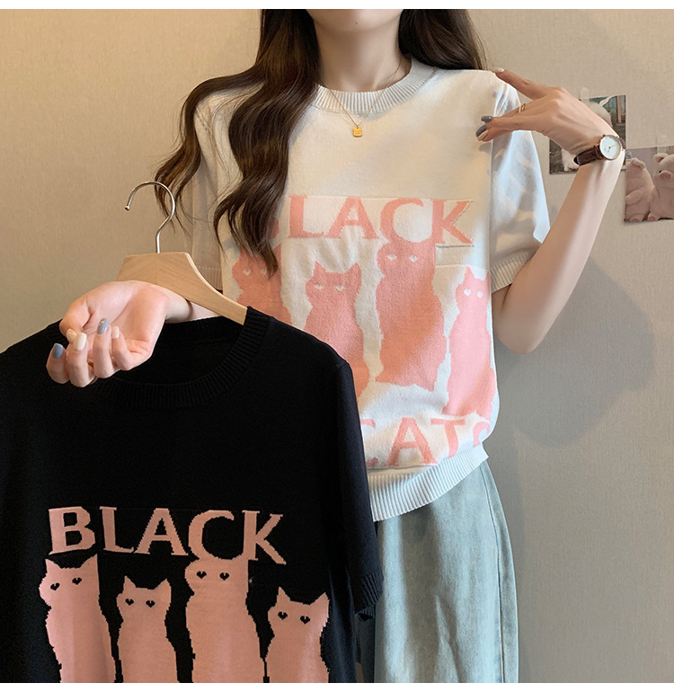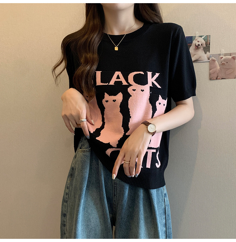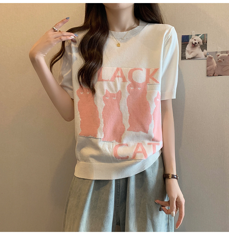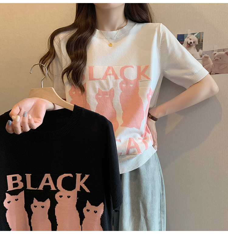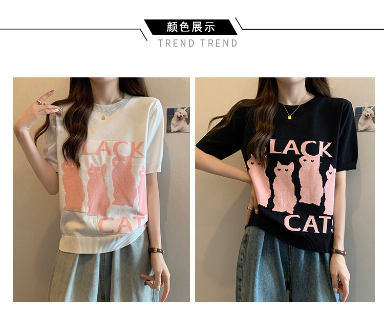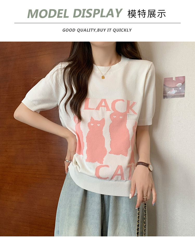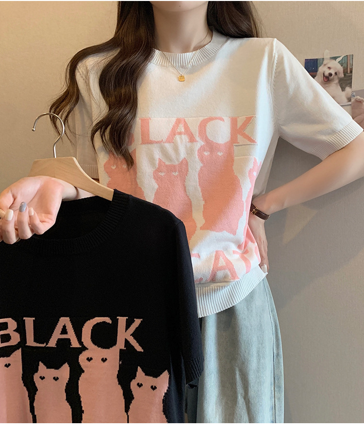 大码女装2025夏季新款胖mm减龄宽松提花针织短袖T恤百搭冰丝上衣