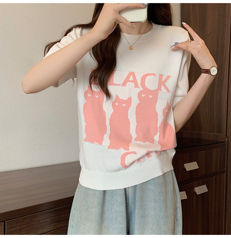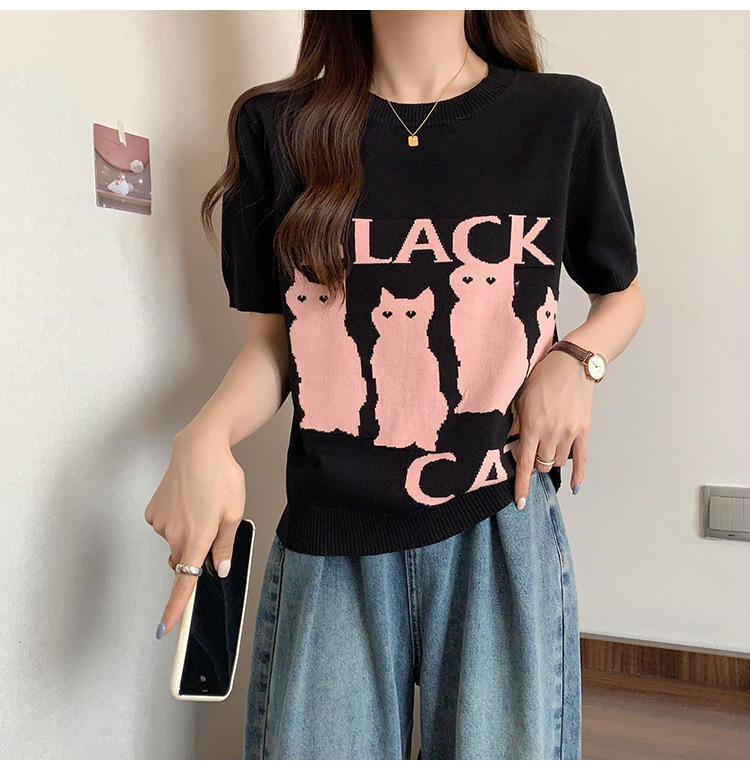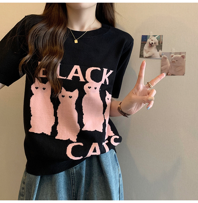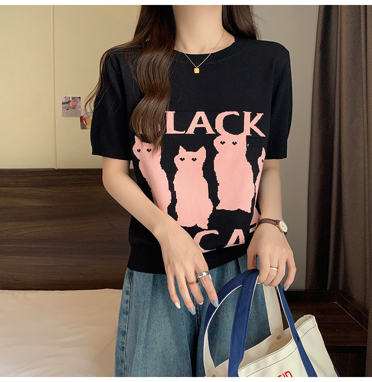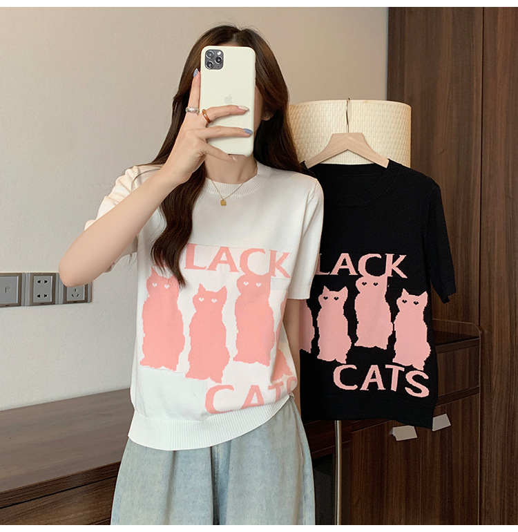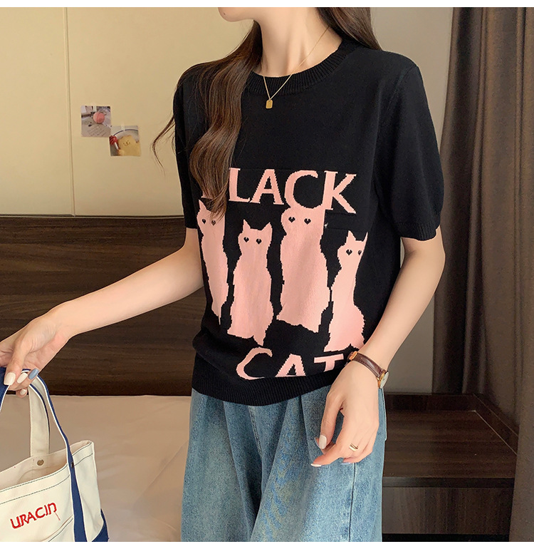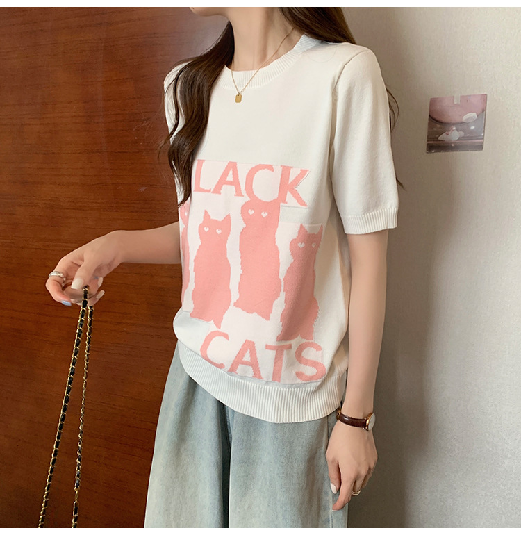 大码女装2025夏季新款胖mm减龄宽松提花针织短袖T恤百搭冰丝上衣