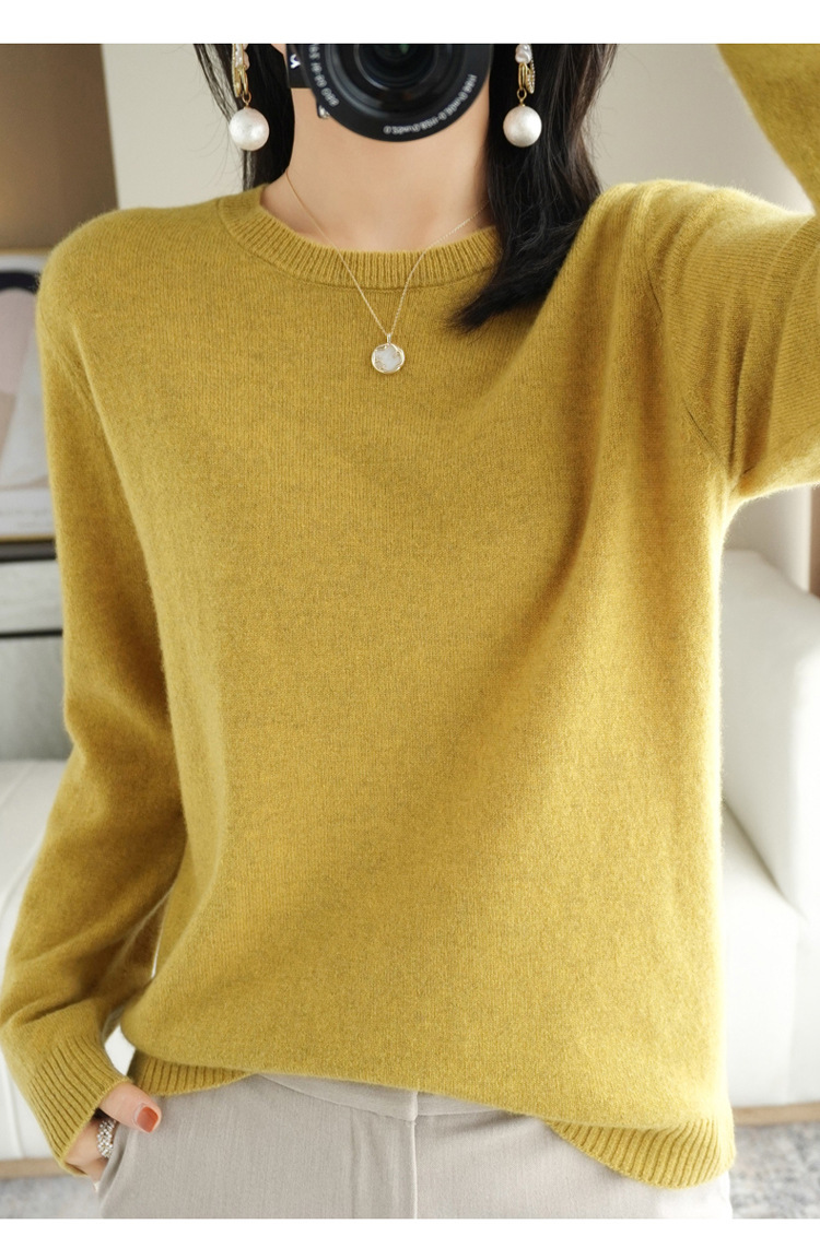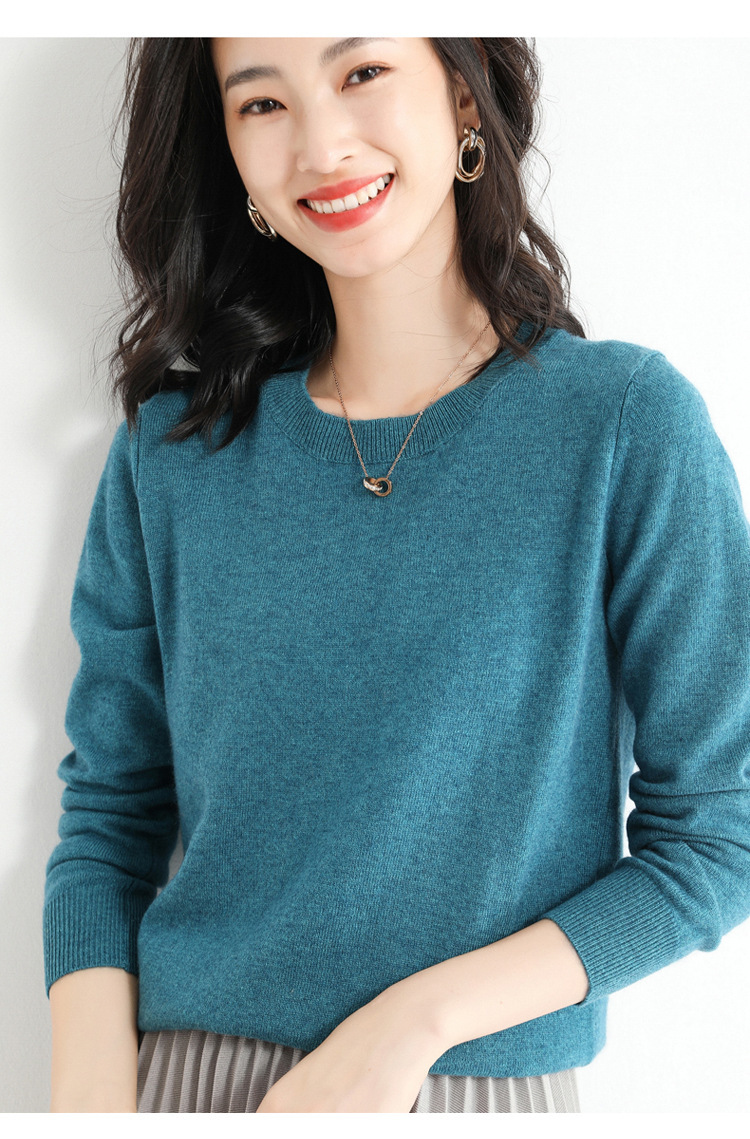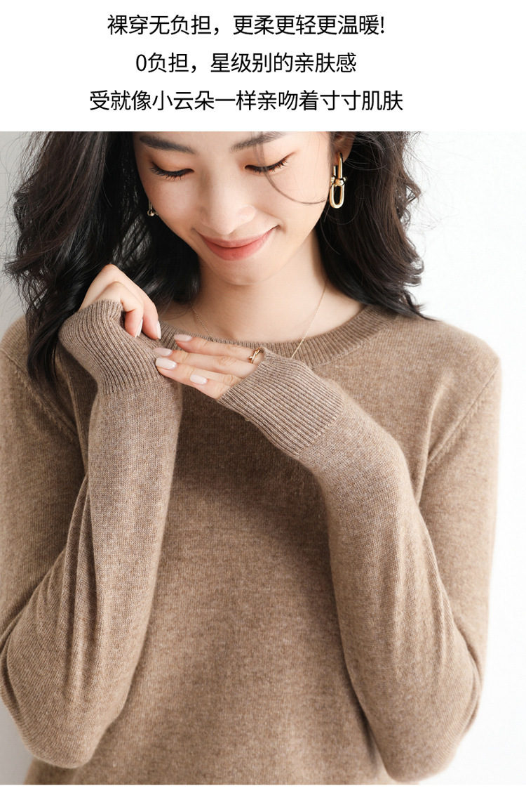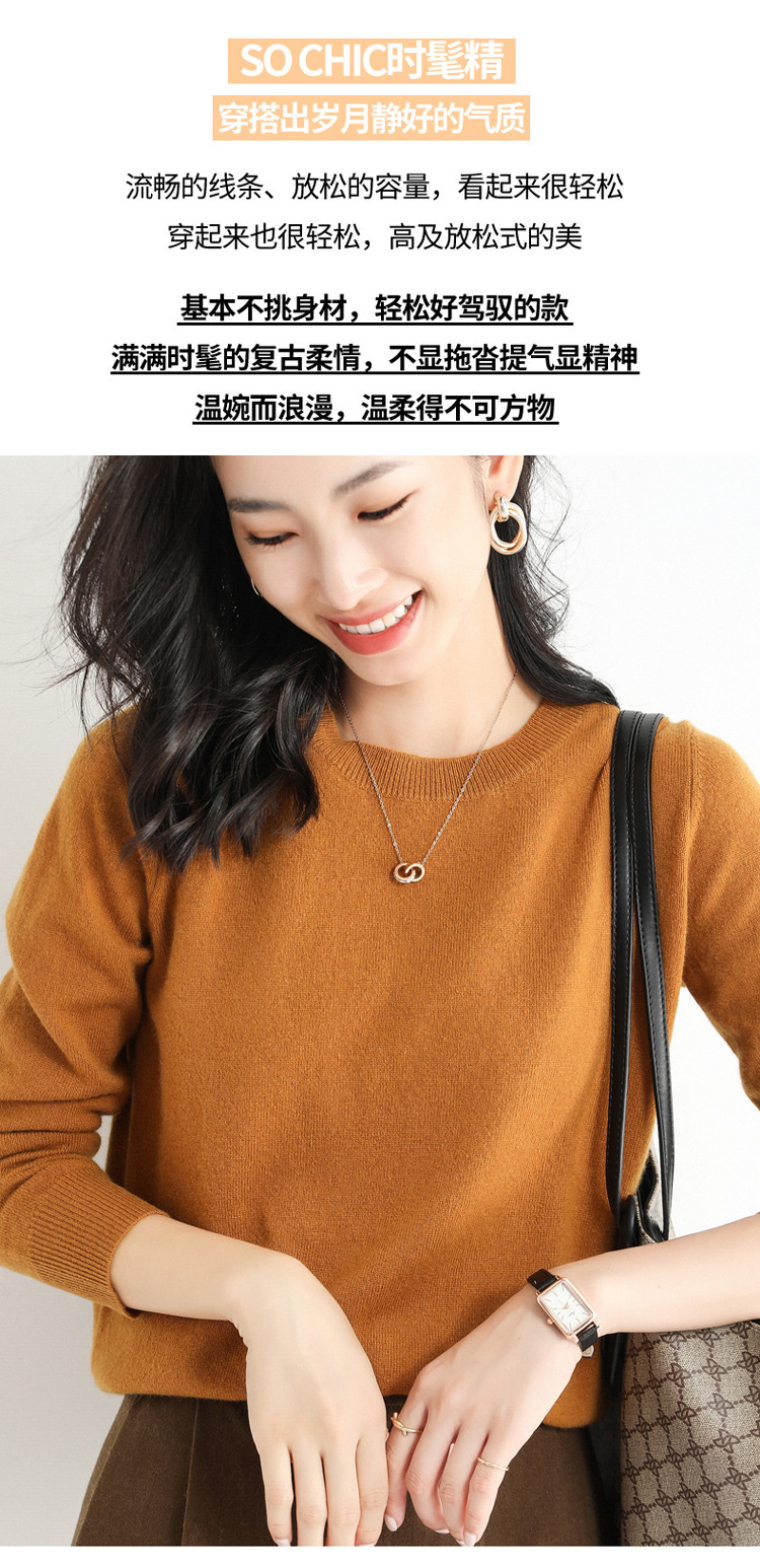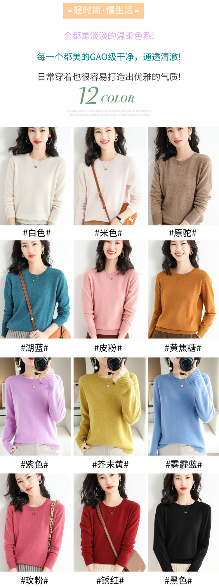 【特价清仓】秋冬季圆领针织女宽松大码长袖百搭纯色套头毛衣内搭薄款打底衫