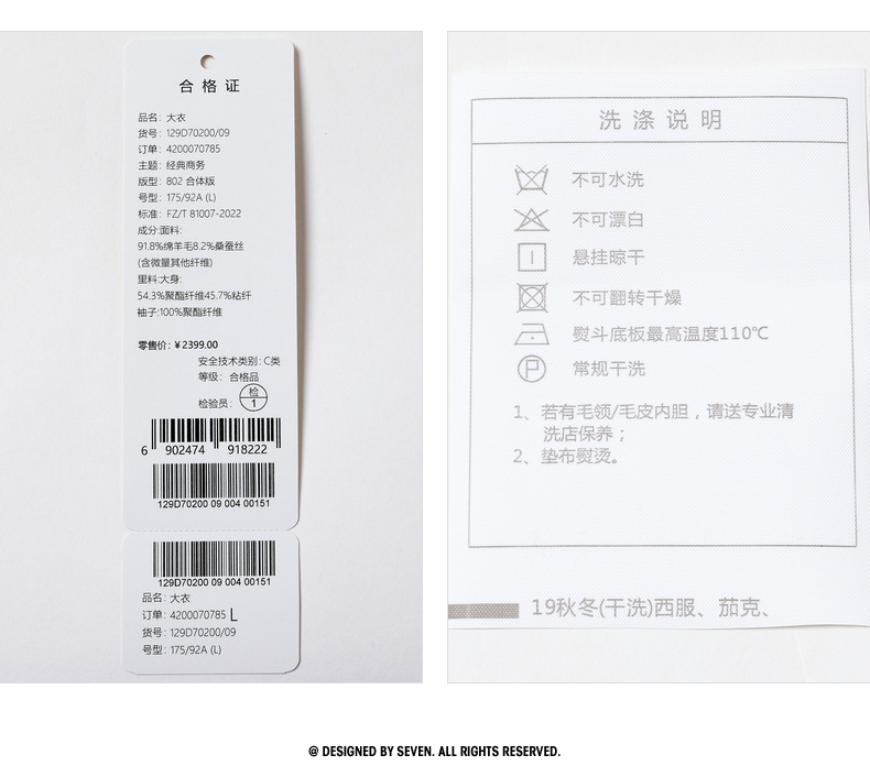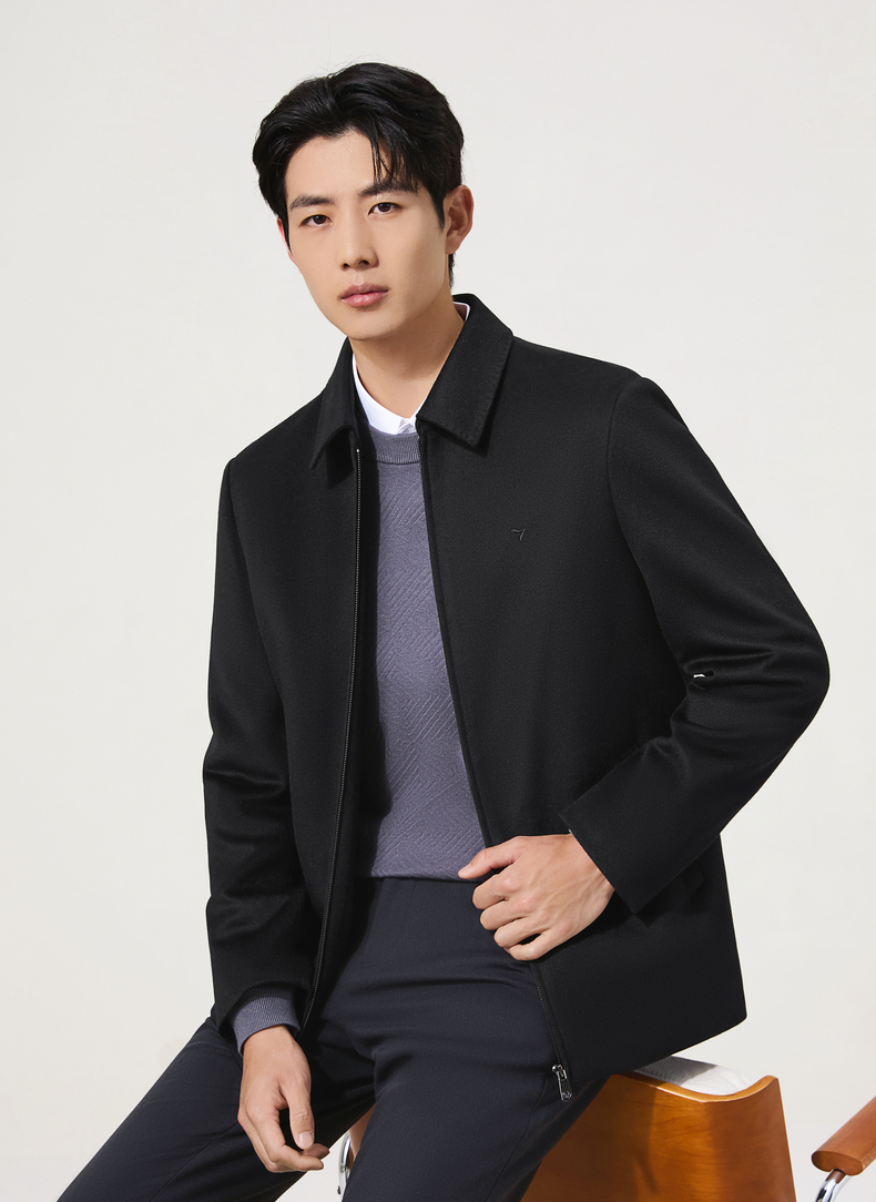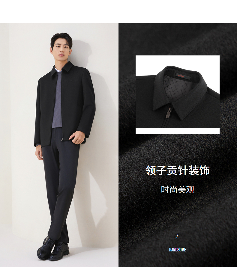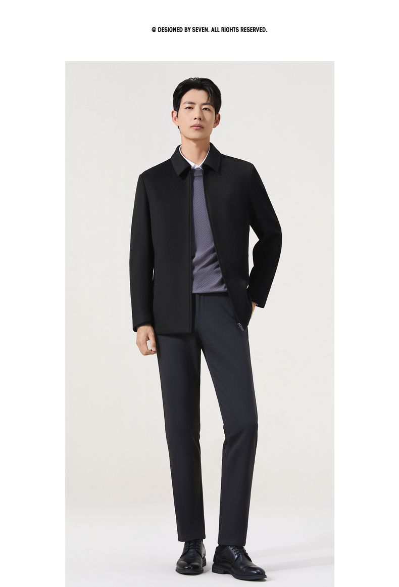 【羊毛/桑蚕丝】柒牌男士羊毛行政大衣2025冬季新款保暖男装外套129D70200