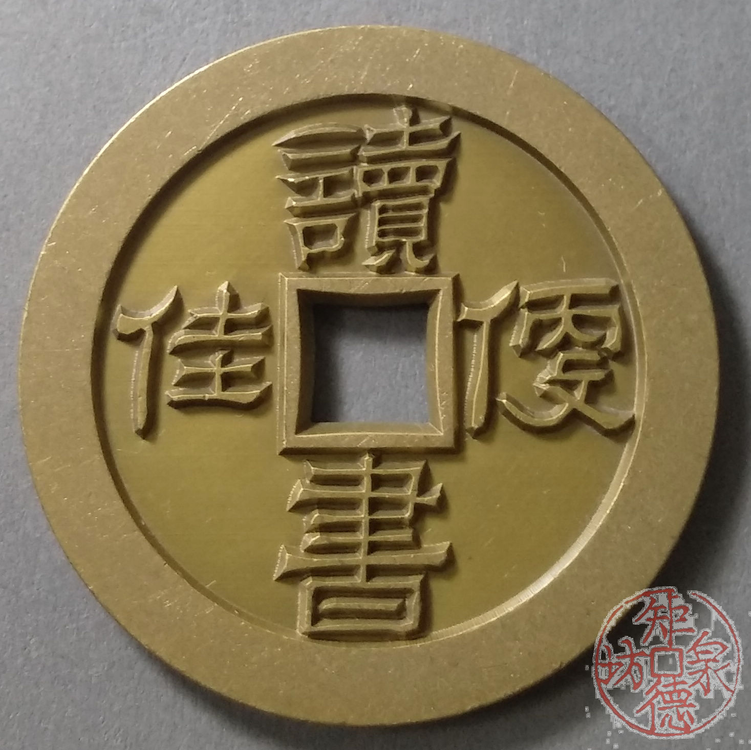 古泉书馆文创 为善最乐读书更佳 雕母 文房铜镇 DH0014