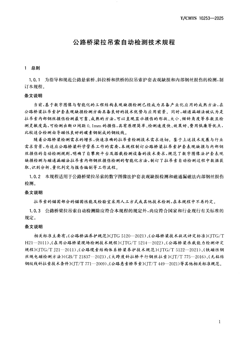 公路桥梁拉吊索自动检测技术规程(T/CHTS 10253——2025)