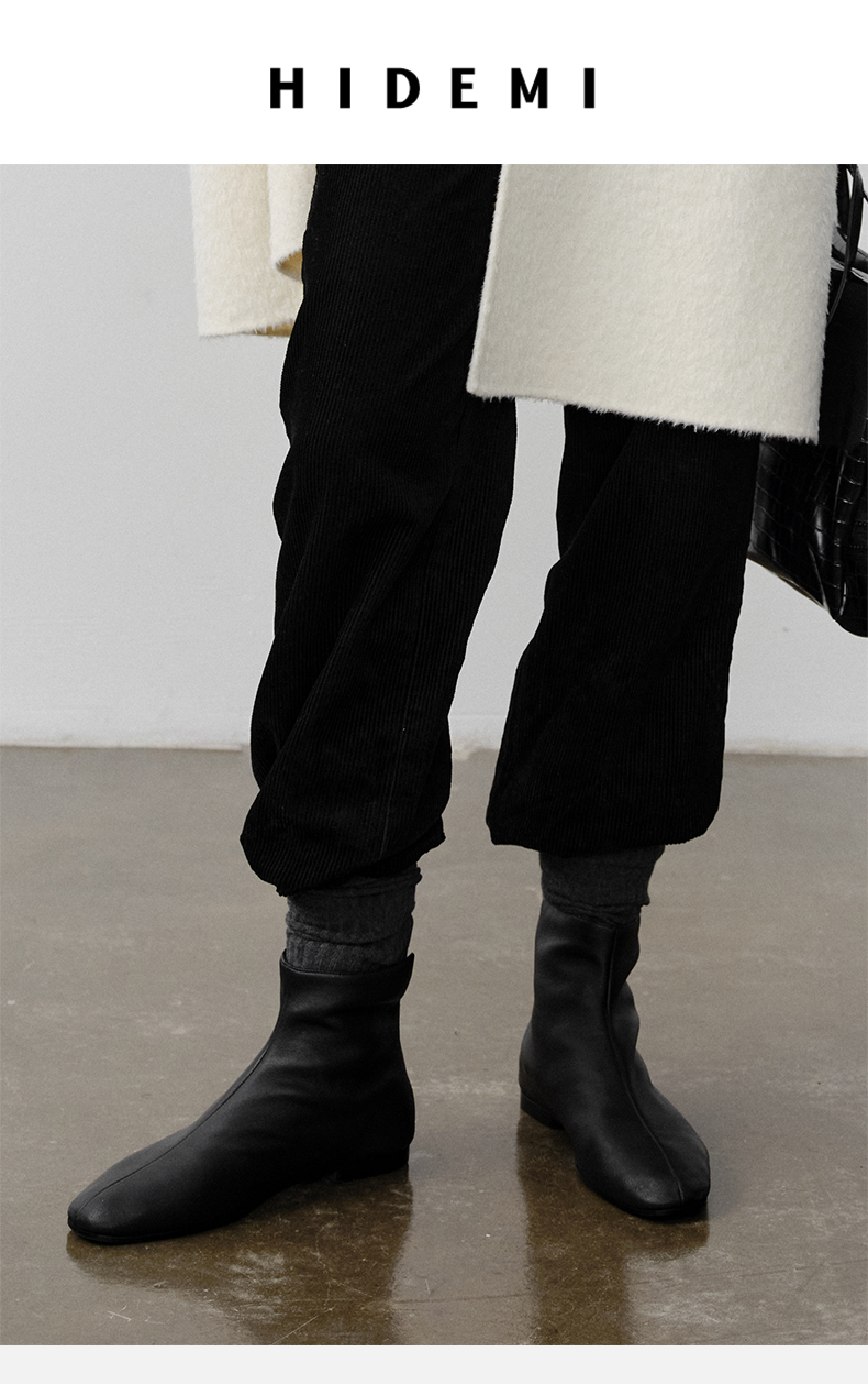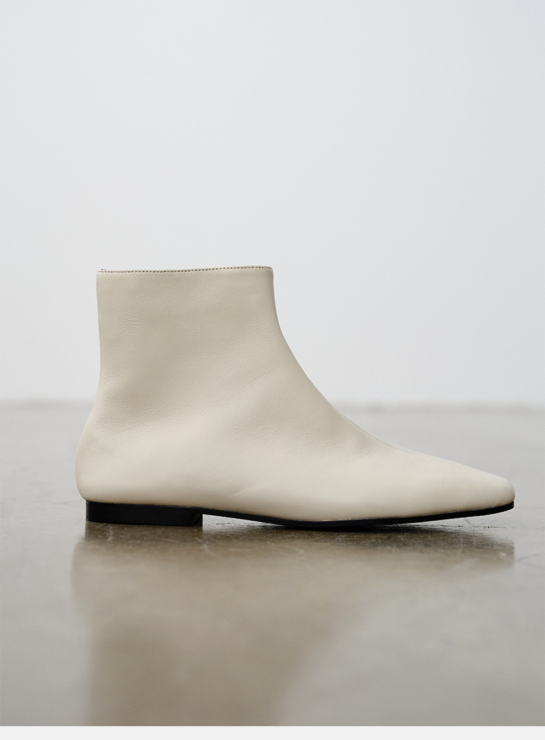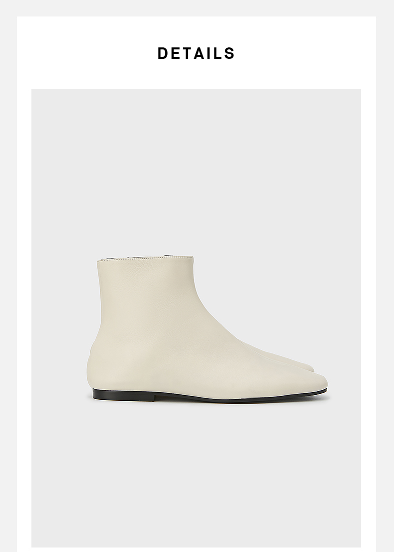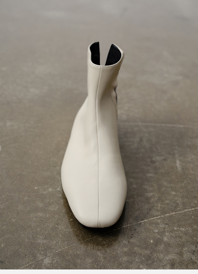 HIDEMI 弹力牛皮方圆头平底短靴 白色/黑色