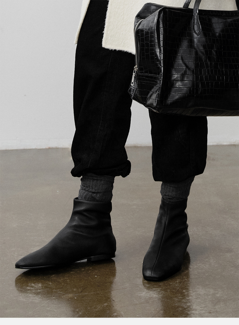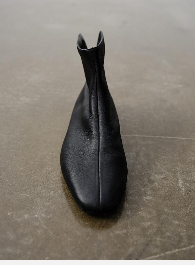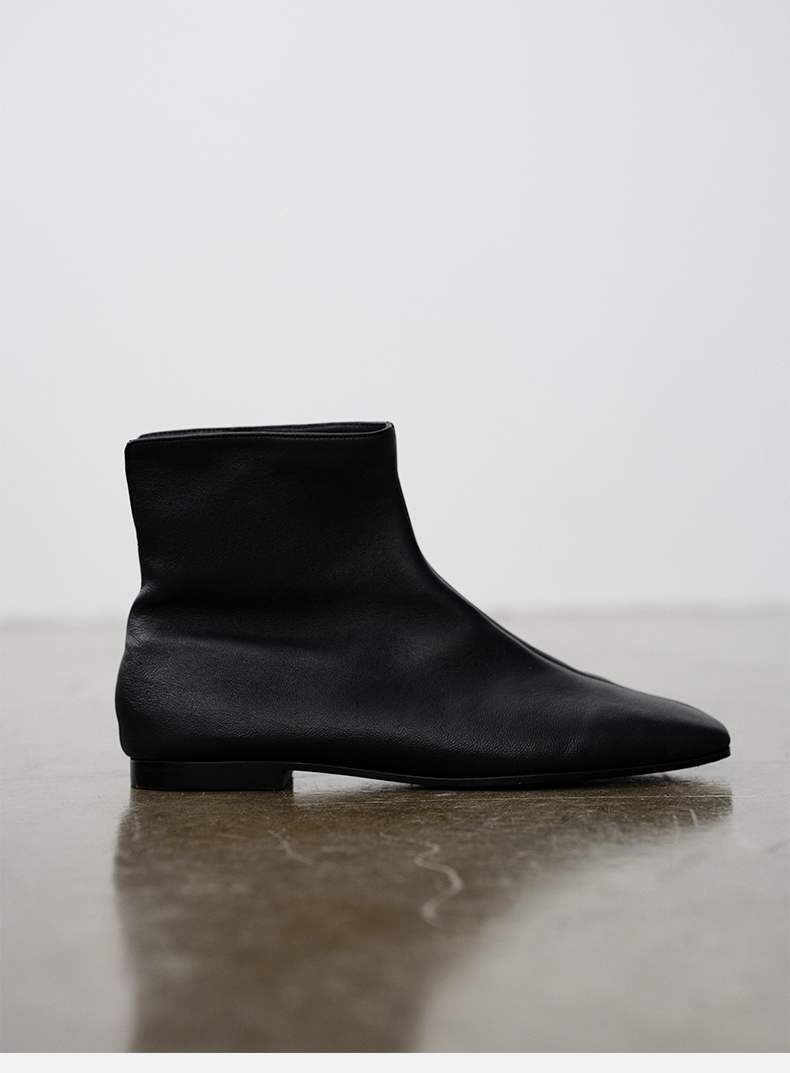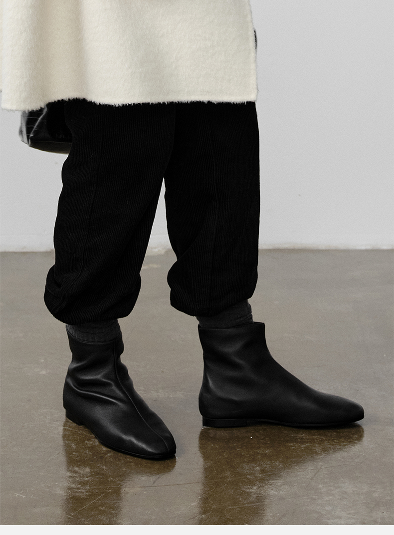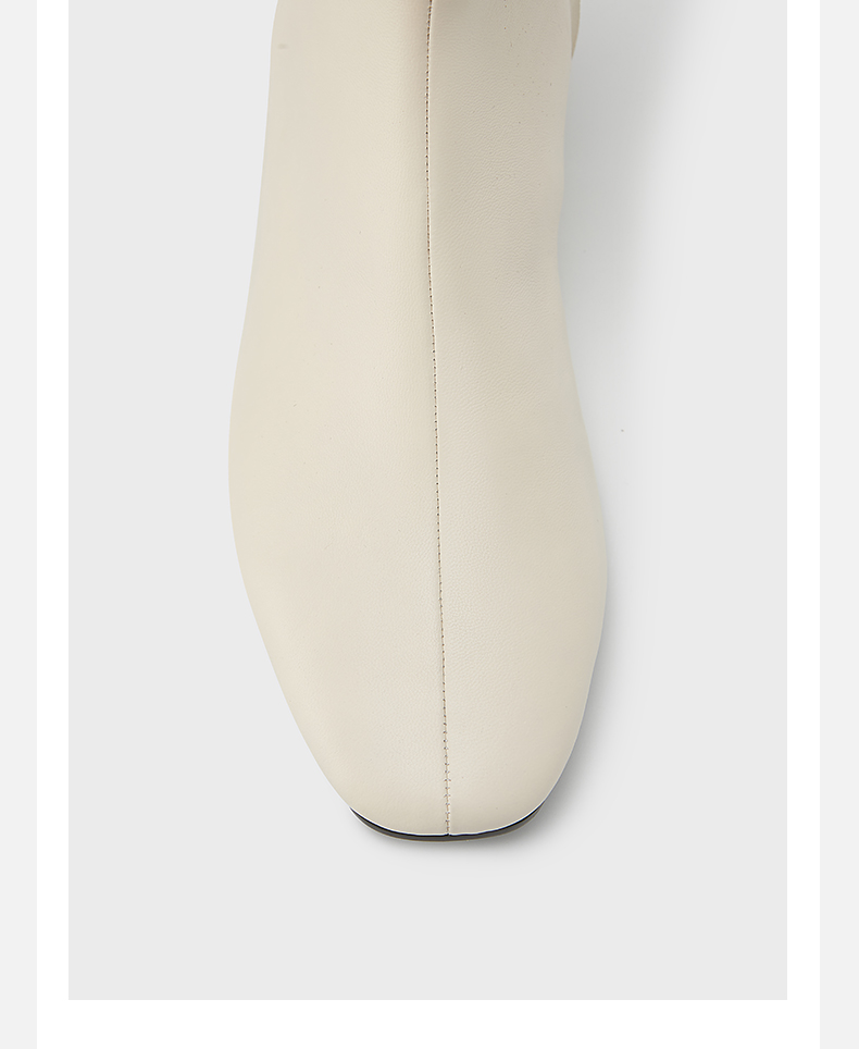 HIDEMI 弹力牛皮方圆头平底短靴 白色/黑色